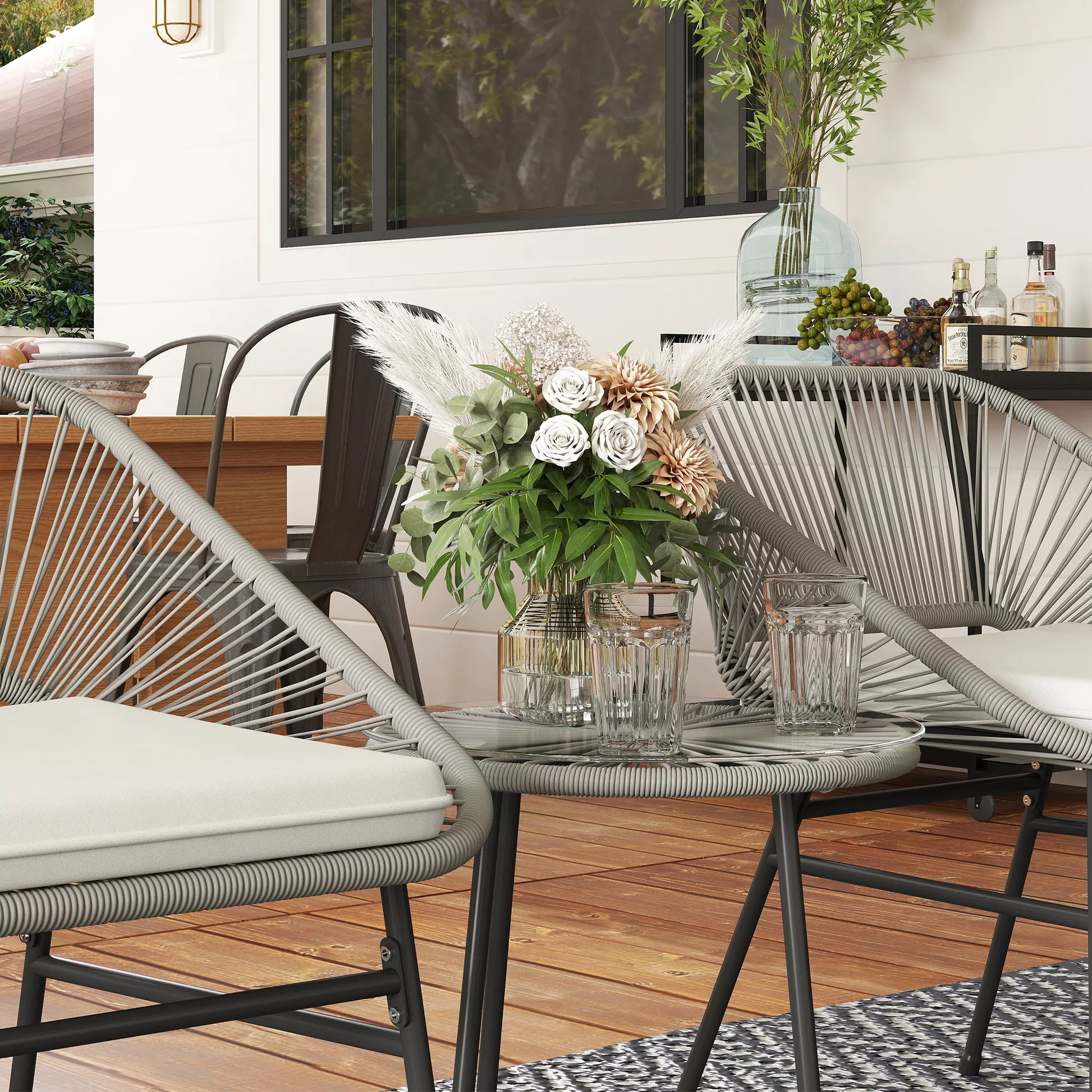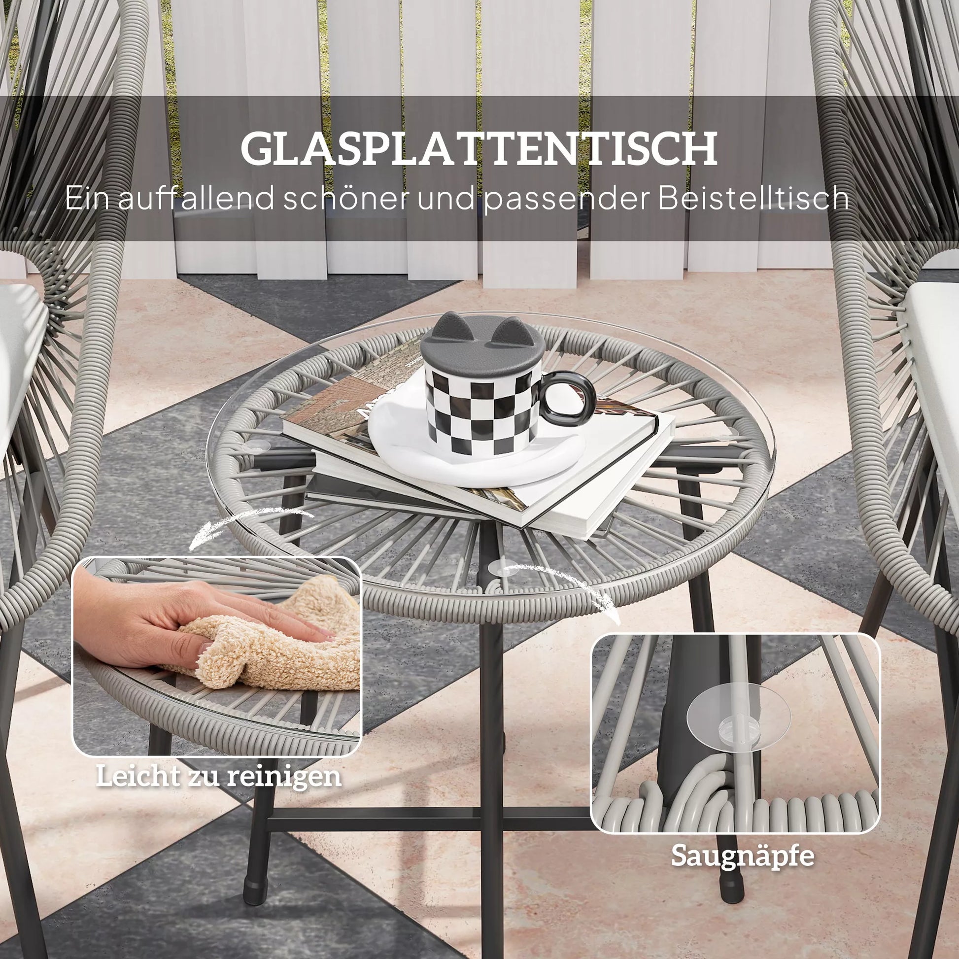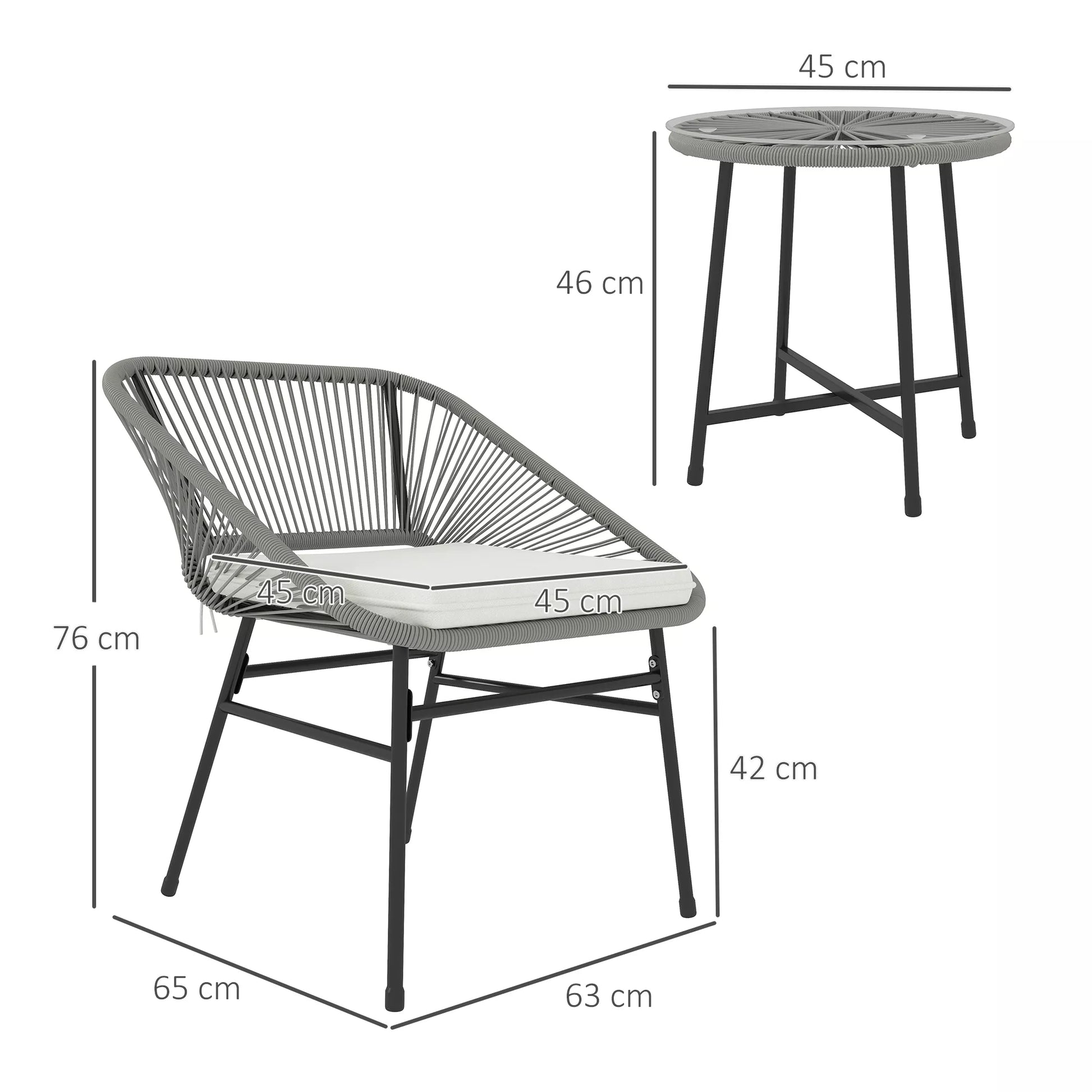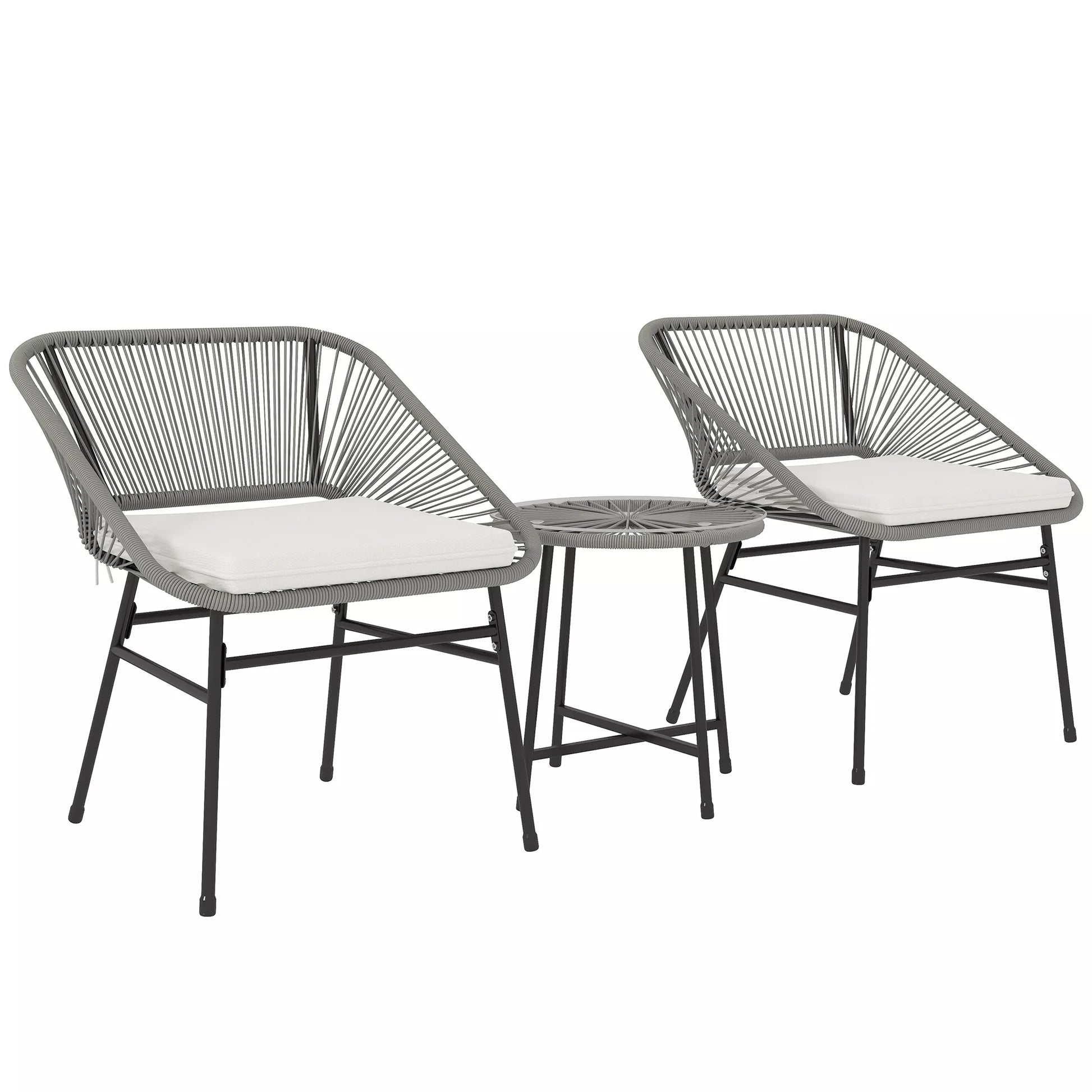 Atgaivinkite savo lauko erdvę su žavingu, oro sąlygoms atspariu rotango sodo baldų komplektu, puikiai tinkančiu ir mažoms erdvėms. Baldų komplektą sudaro du kėdės ir stalas su stikliniu stalviršiu, palaikomi tvirtų, milteliais dengtų plieno rėmų. Minkštos sėdimosios pagalvėlės paverčia šią balkono poilsio zoną jaukia susibūrimo vieta atsipalaiduoti ir pabendrauti.