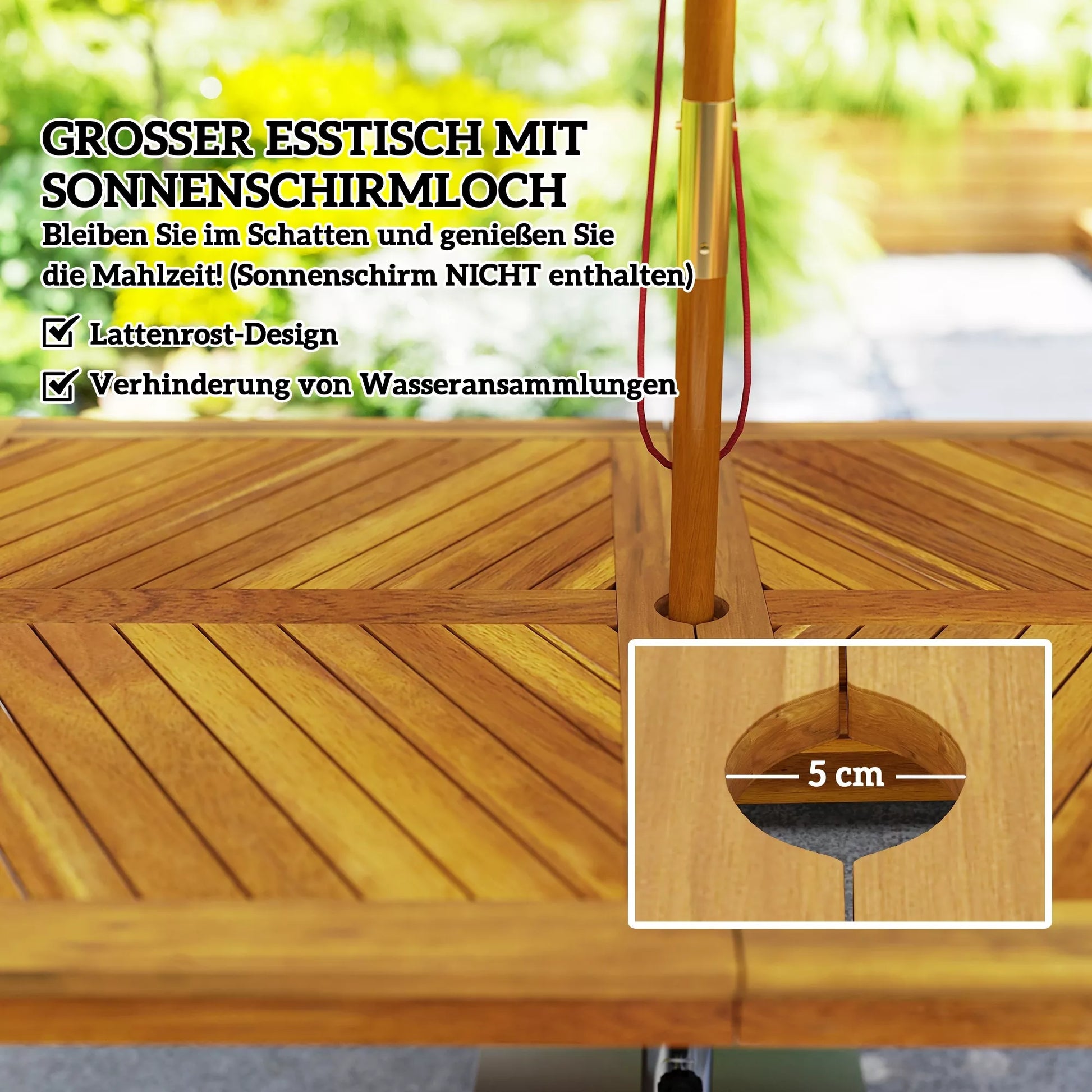 - ✔ Sodo komplekto akacijos medienos rėmas užtikrina stabilumą ir ilgalaikį naudojimą