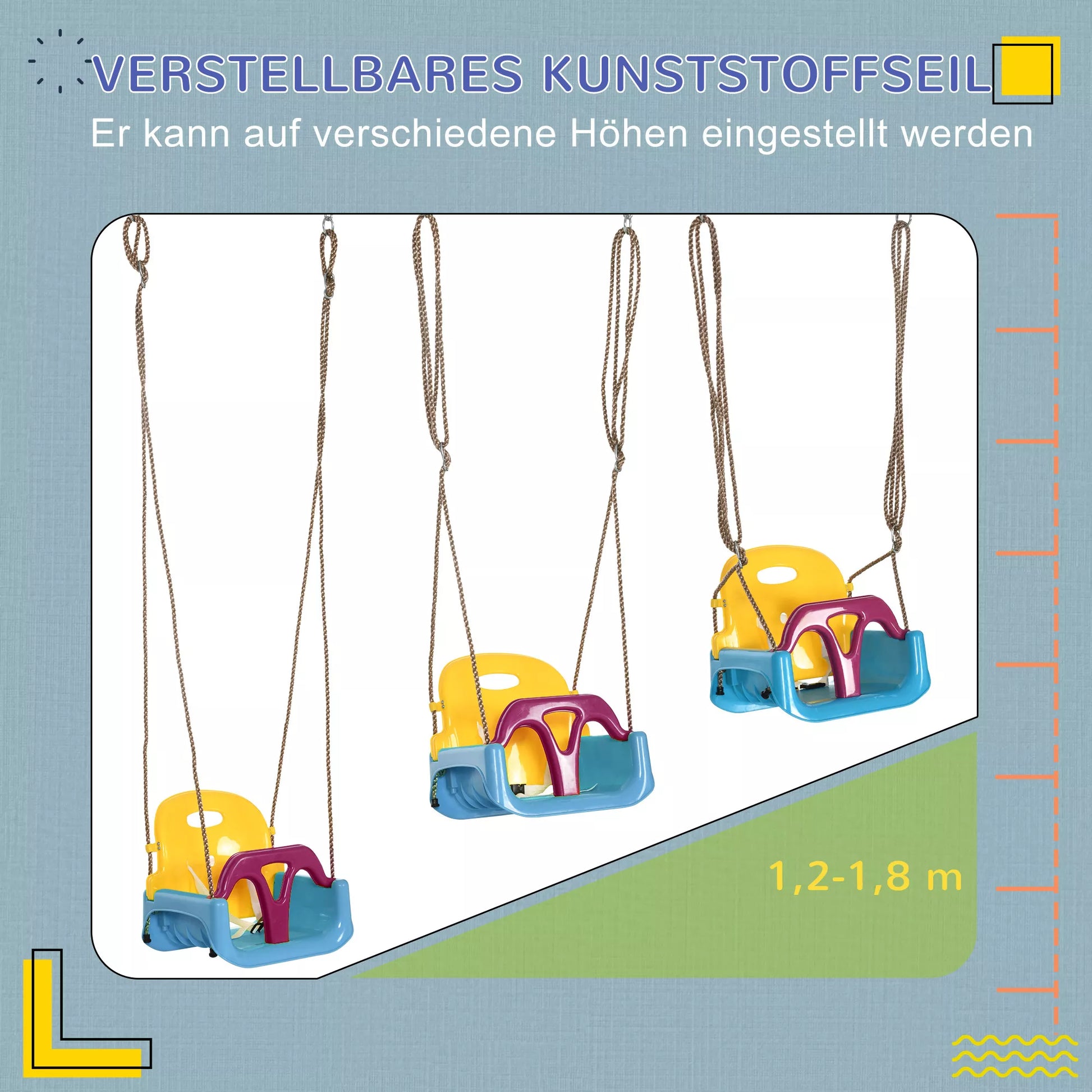 3-in-1 vaikiškos sūpynės, reguliuojamo aukščio, nuimama atlošama dalis, skirtos naudoti patalpose ir lauke, mėlyna+geltona, 42 x 33 x 180 cm