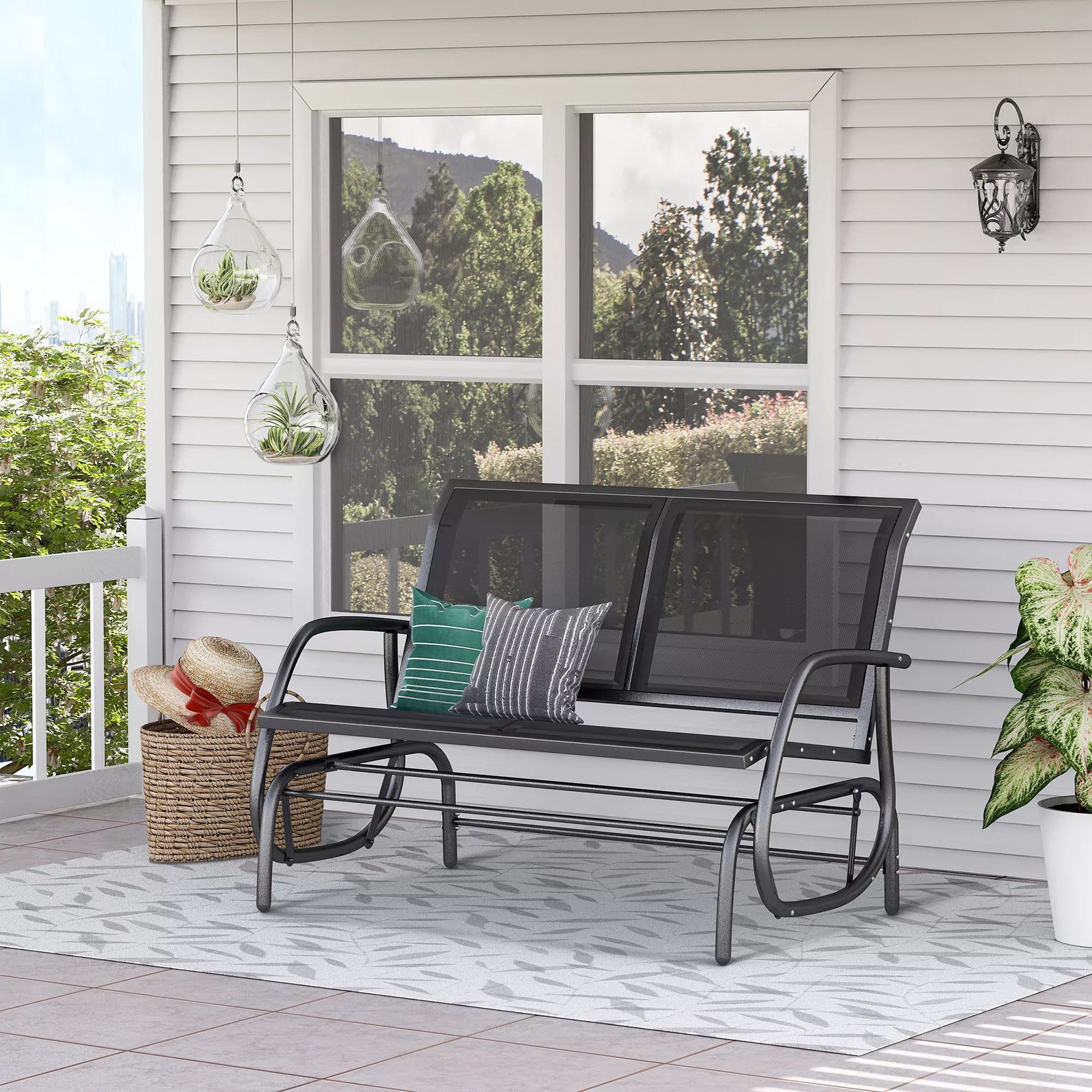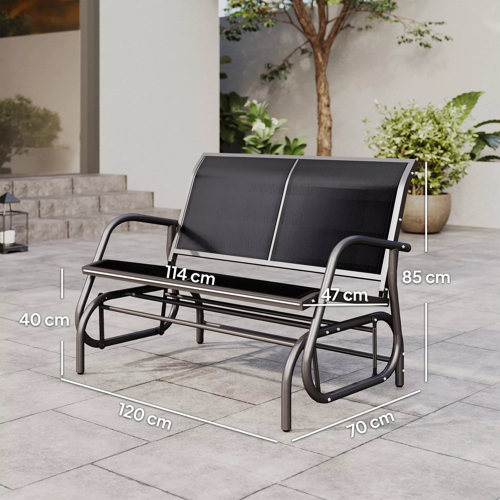 -vietė supynės kėdė Sodo suolas su supynės mechanizmu, atlaikantis iki 200 kg svorį 120 x 70 x 85 cm Juoda