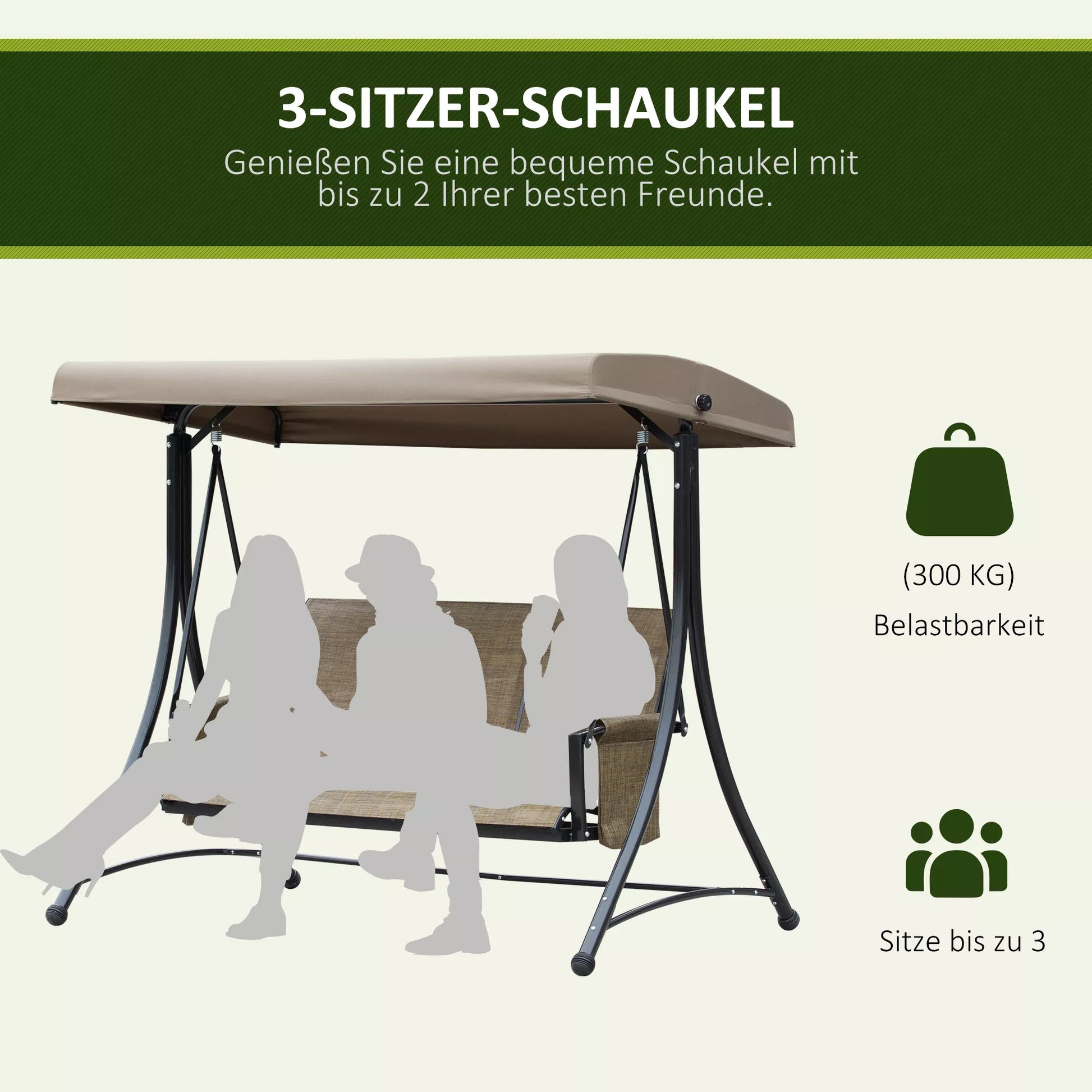 3 vietų holivudinės sūpynės su reguliuojamu stogeliu turi tris sėdimas vietas iš lygaus, kvėpuojančio tinklinio audinio, užtikrinančios puikų sėdėjimo komfortą ir patogų valymą. Holivudinių sūpynių reguliuojamas stogelis suteiks Jums idealų apsaugojimą nuo saulės šiltomis ir saulėtomis dienomis. Holivudinės sūpynės pasižymi tvirta konstrukcija, kuri leidžia švelniai siūbuoti po darbo dienos ar atostogų metu.