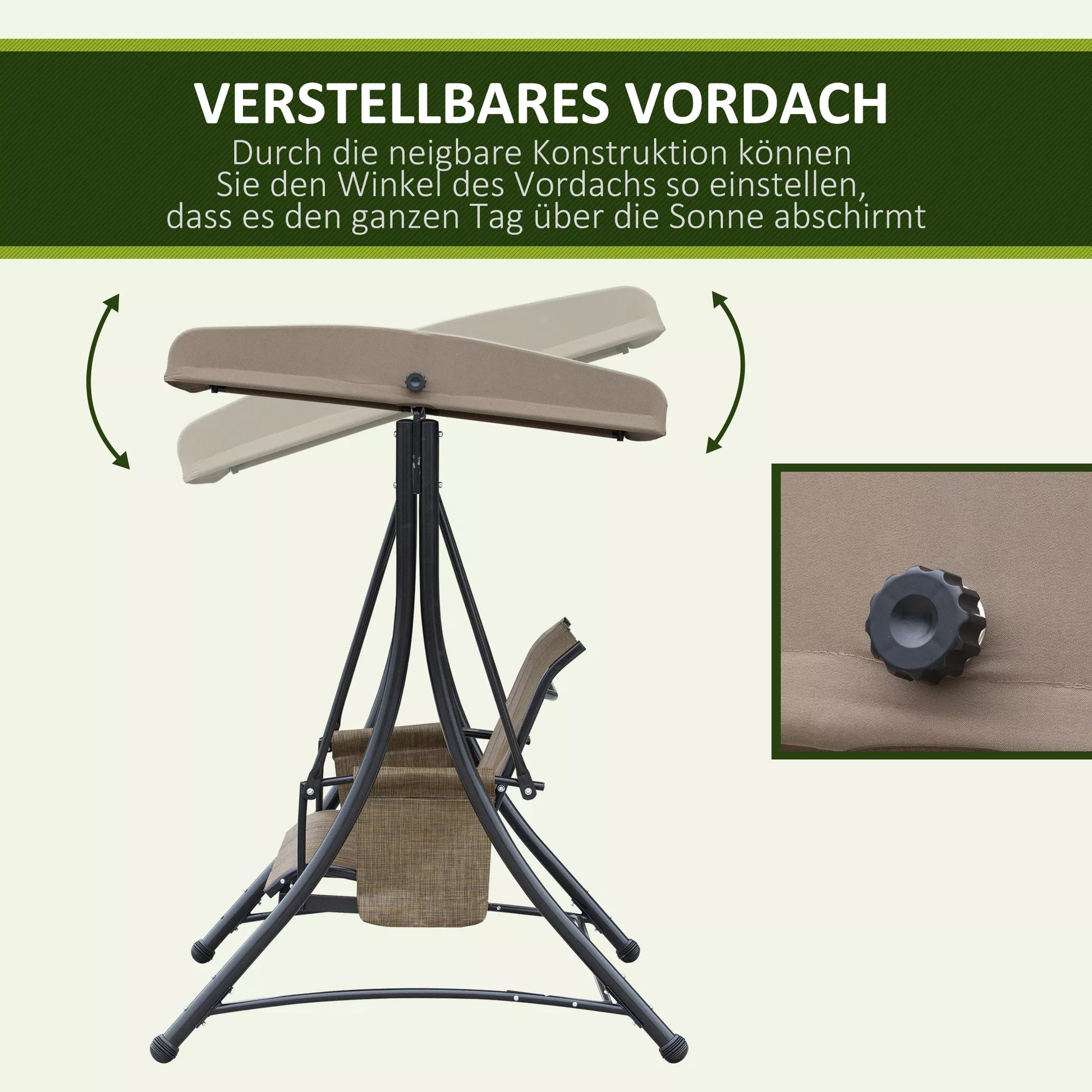 - ✔ Reguliuojamas sodo sūpynių suaugusiems stogelis optimaliam pavėsiui