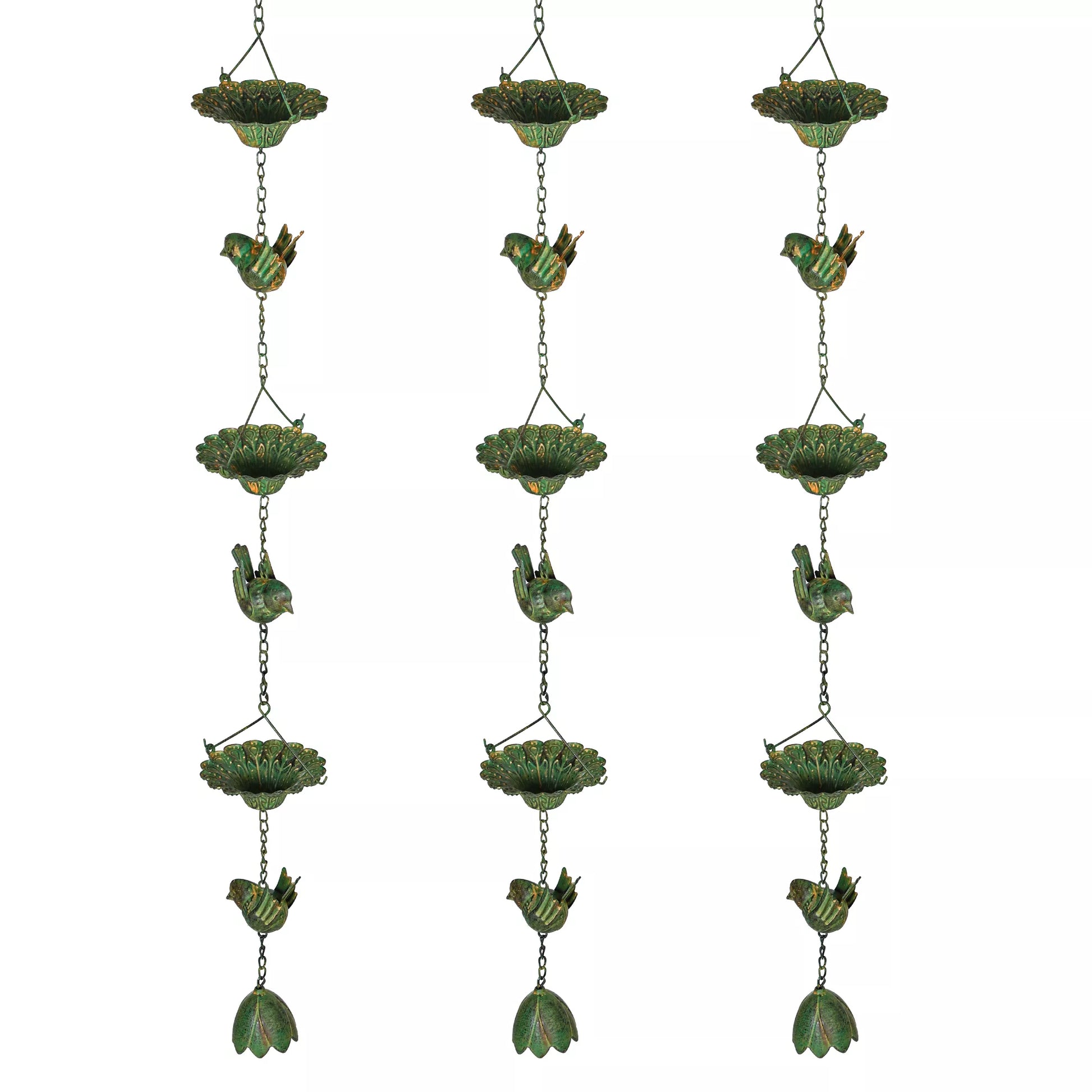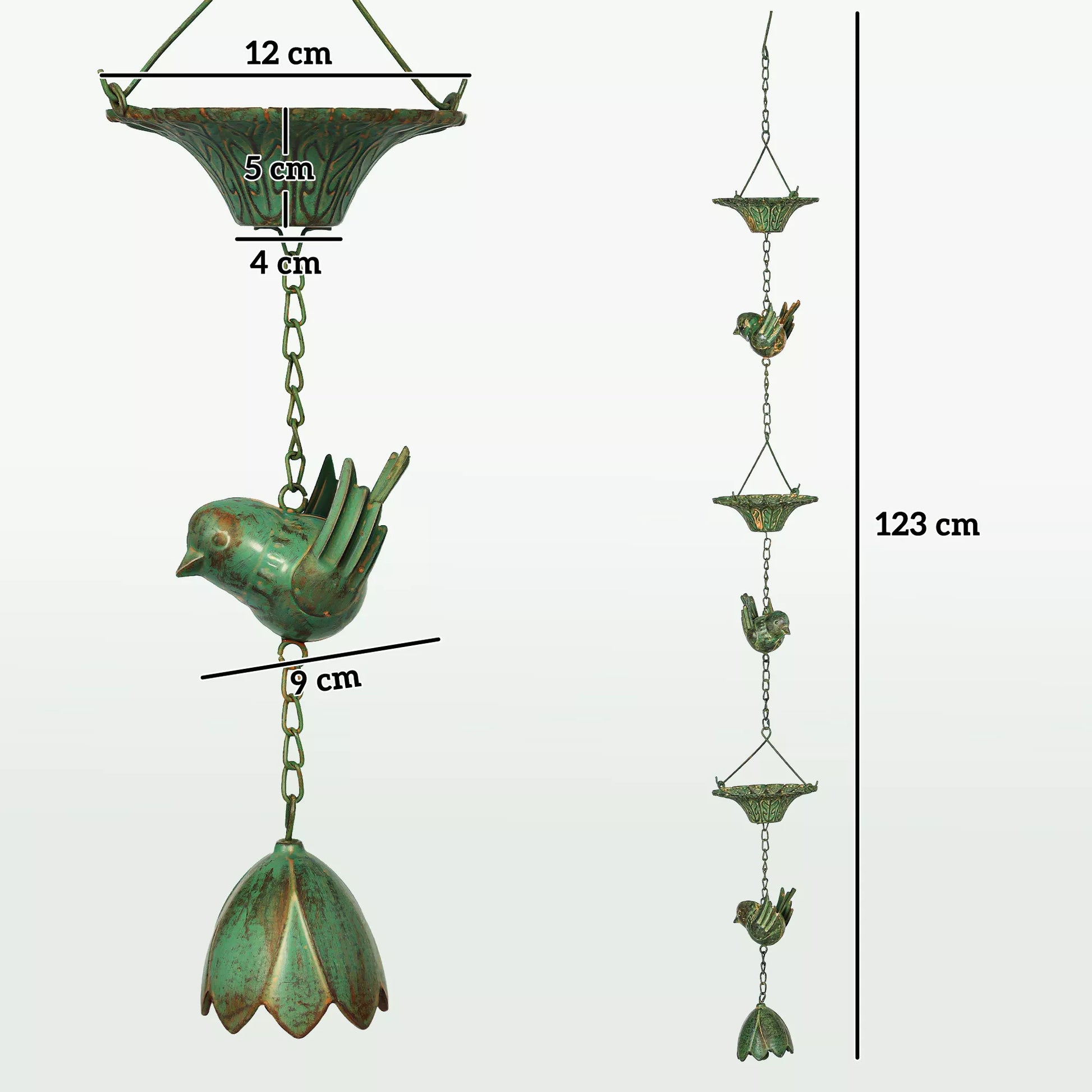 3 vnt. Rinkinys Lietaus Grandinės 123cm Metalinis Vandens Nutekėjimo Vamzdelis su Pritvirtintu Pakabuku Paukščių Varpelis Žalias