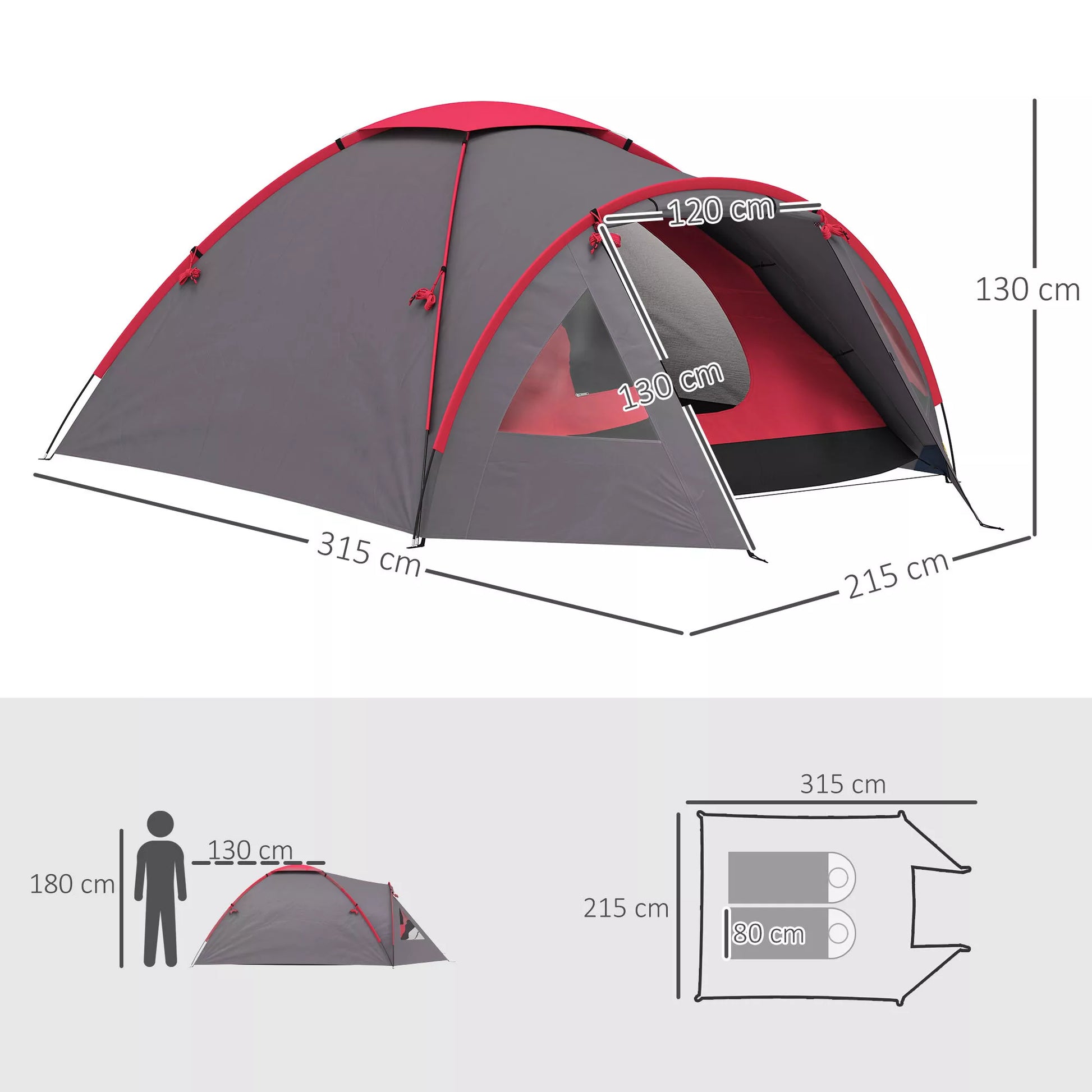 Kempingo palapinė 2 žmonėms, lengva, stabili, atspari vandeniui, UV 50+ su tentu, durimis, langu, grindų danga, pilka