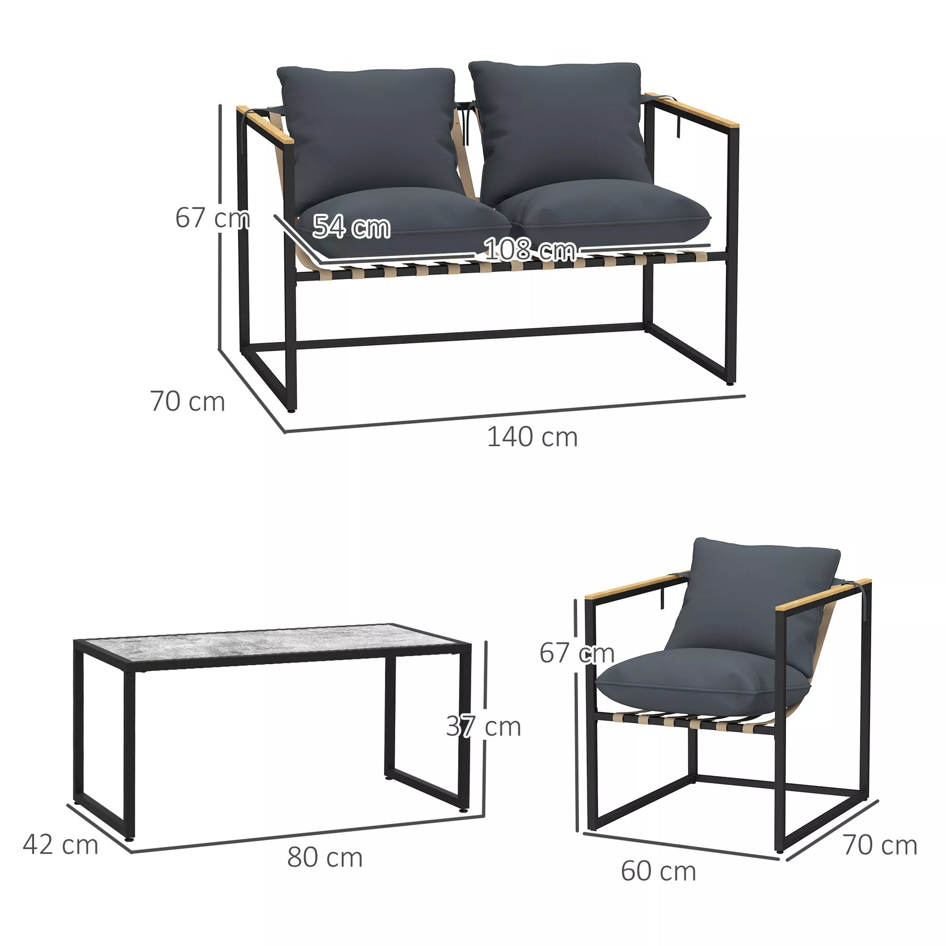 - ✔ Lauko baldų komplekto Velcro tvirtinimo dirželiai, kad neslystų