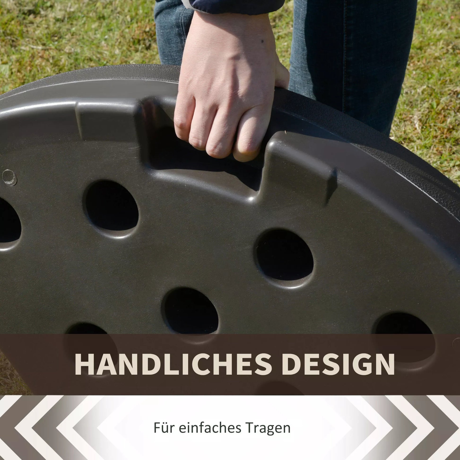 Nesijaudinkite, kad vėjas sutrukdytų jūsų vasaros poilsiui pavėsyje su šiuo 4 dalių skėčio svorio pagrindu. Šis 4 dalių komplektas pagamintas iš patvaraus HDPE medžiagos, yra atsparus oro sąlygoms ir lengvai prižiūrimas. Tereikia užpildyti pagrindą vandeniu arba smėlio ir vandens mišiniu, ir jis saugiai bei tolygiai laikys jūsų skėtį sode ar terasoje.