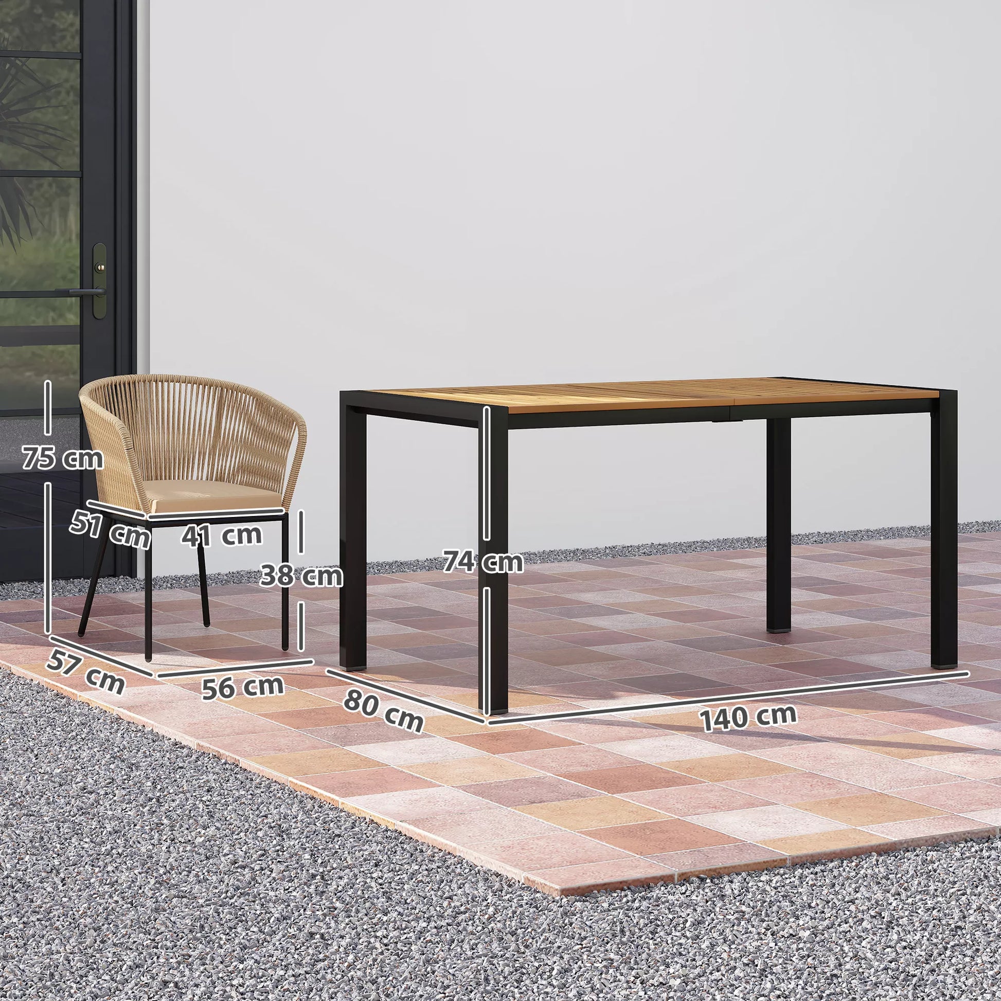 - ✔ Medžiaga: Akacijos mediena, plienas, poliesteris, putplastis, PE rotangas