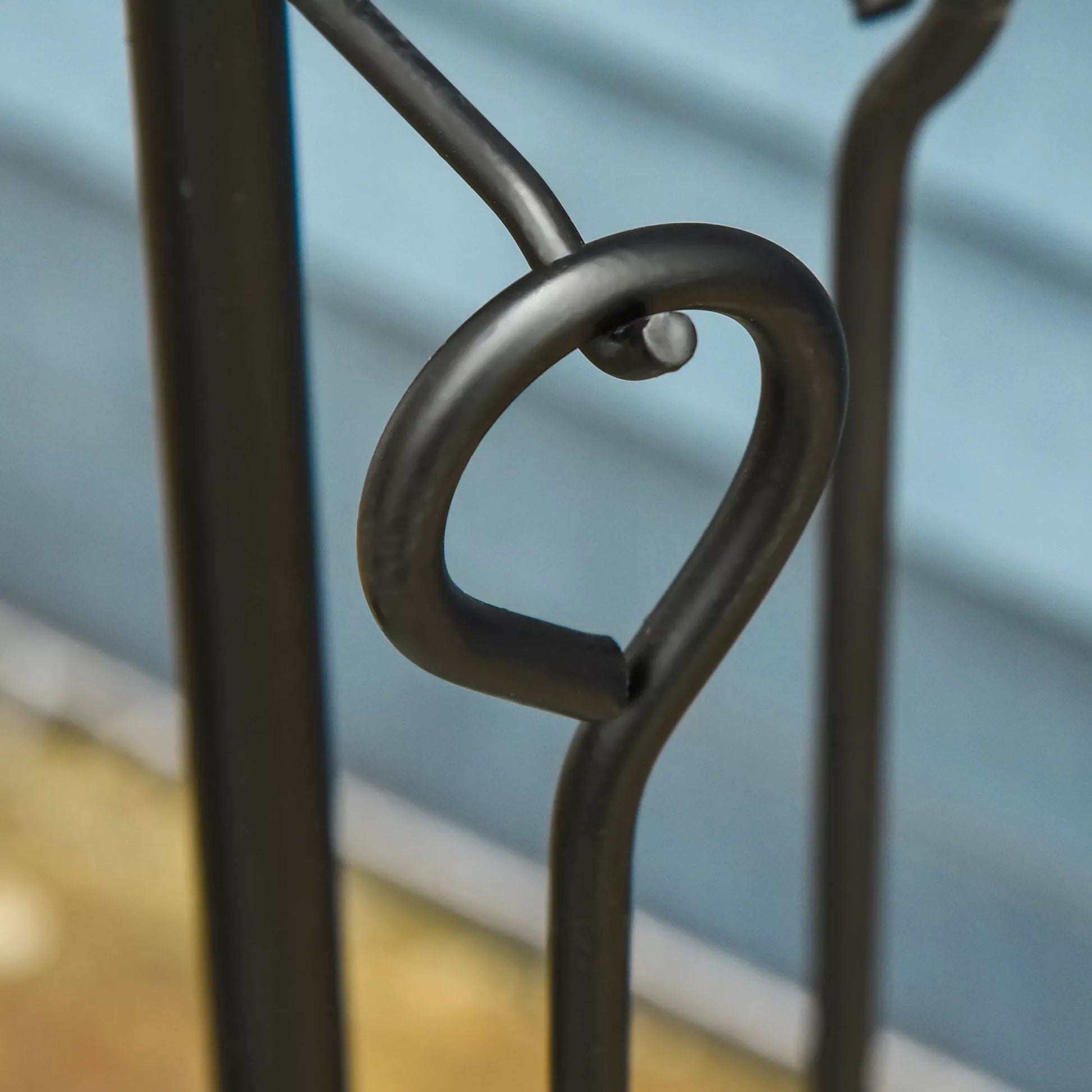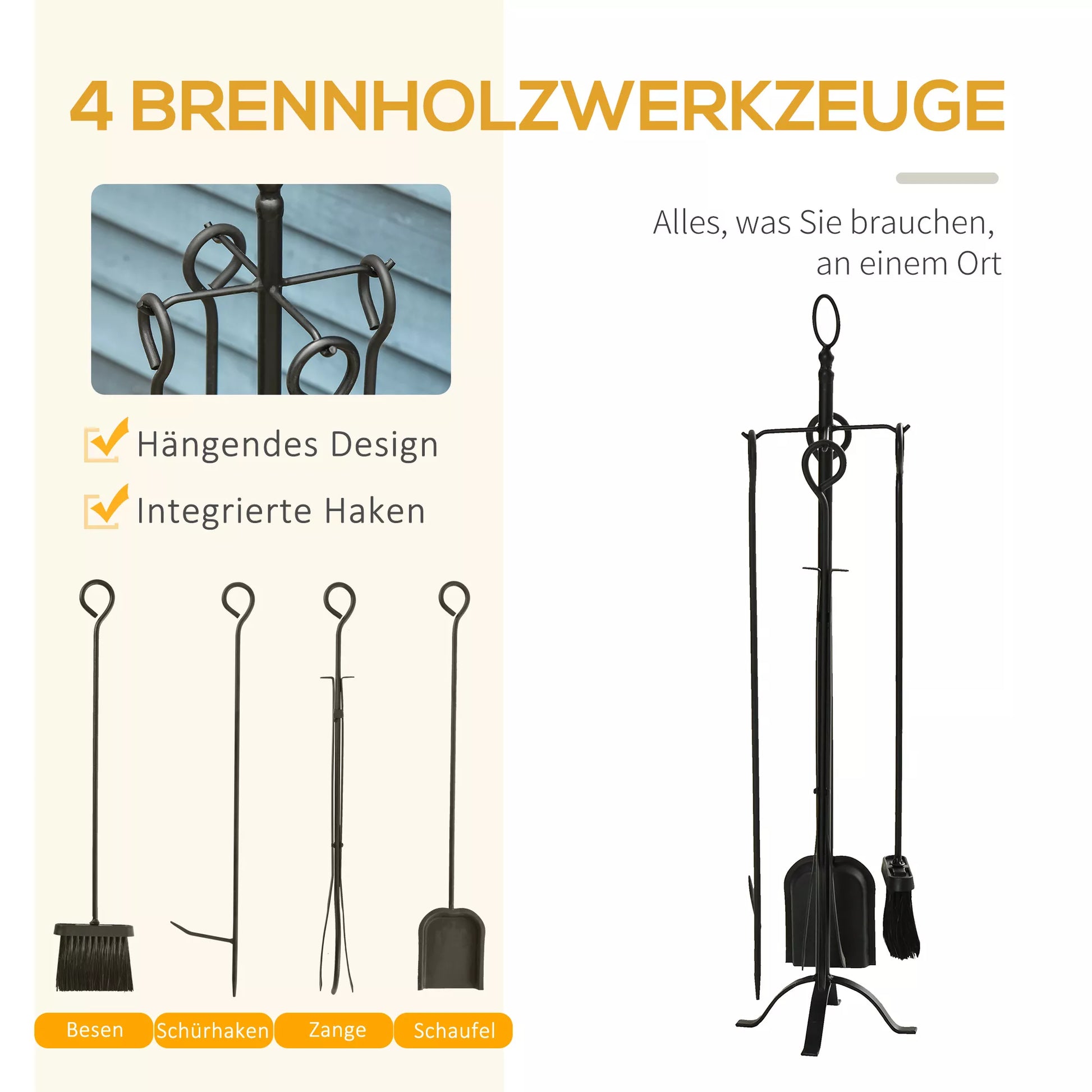 Šis praktiškas 5 dalių Outsunny židinio įrankių rinkinys apima šepetėlį, semtuvėlį, žnyples, pakūrimo kablį ir stovą, tenkinantį visus jūsų poreikius šaltą žiemą. Įrankių rinkinys tinkamas tiek lauko židiniams, tiek namų židiniams. Dėl kompaktiško dydžio ir pakabinamo dizaino jis taupo vietą ir yra lengvai laikomas. Šis Outsunny rinkinys yra dekoratyvus ir funkcionalus priedas prie jūsų židinio.