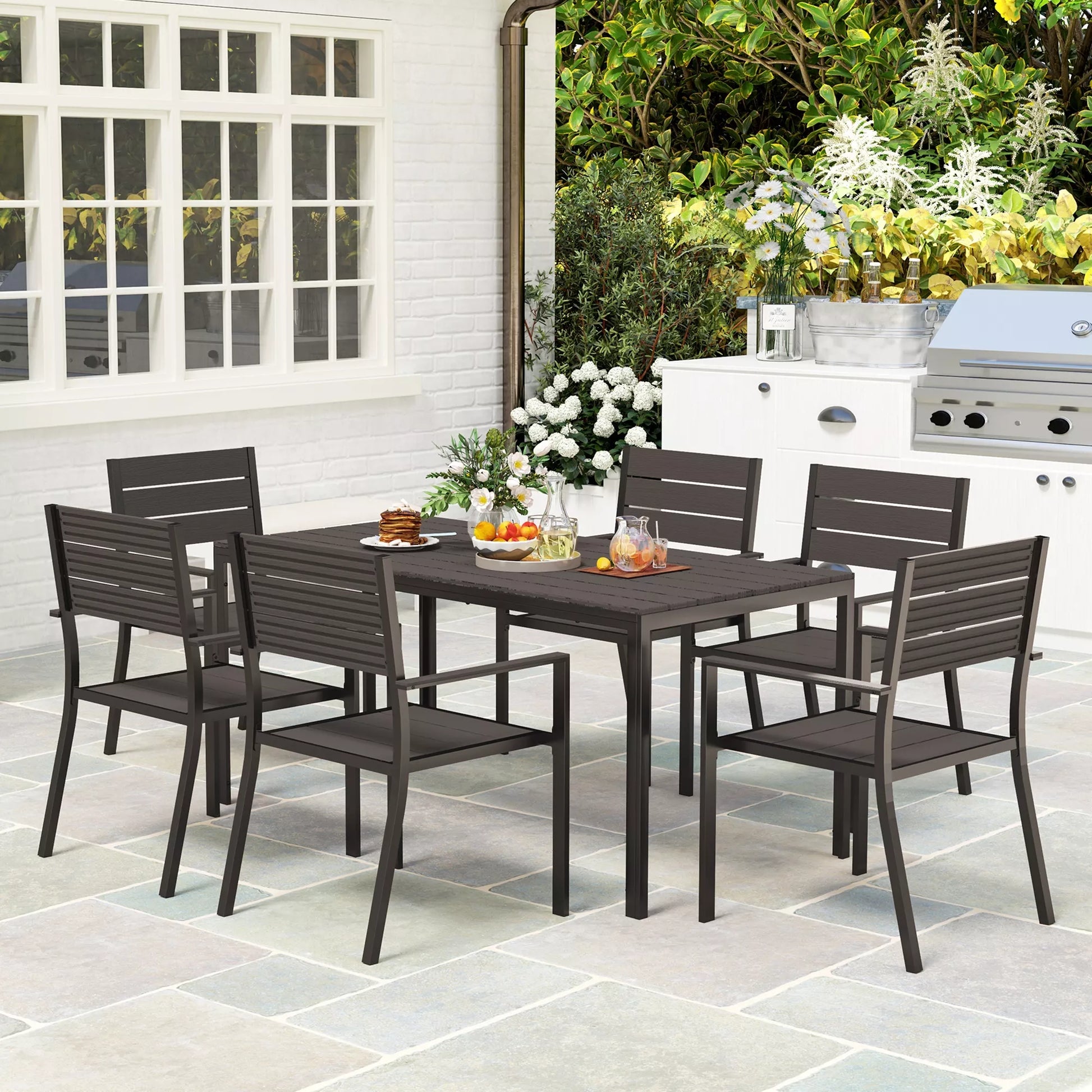 - ✔ Septynių dalių lauko baldų komplektas, susidedantis iš šešių kėdžių ir vieno stalo