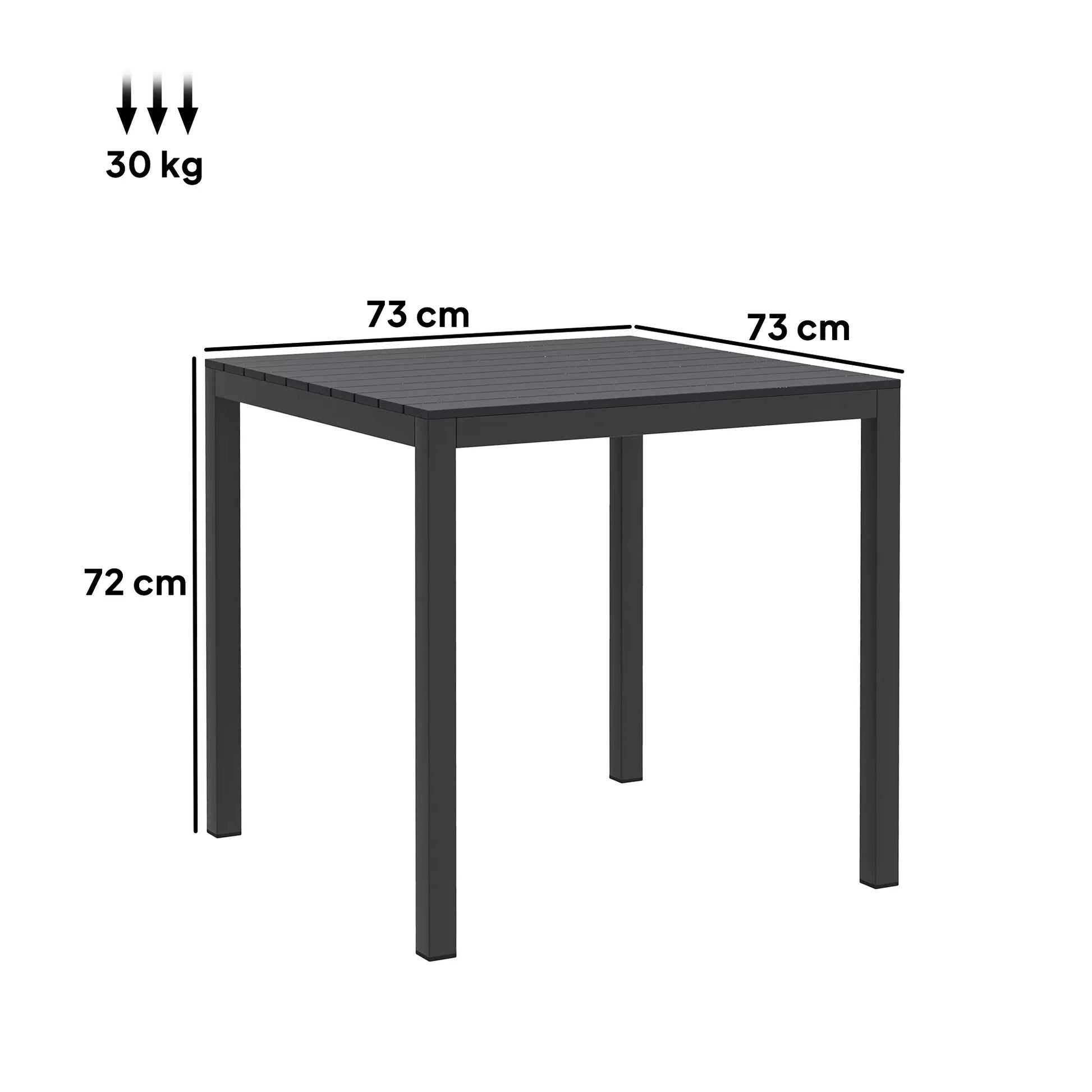 Sodo stalas Aliumininis 73x73 cm Atsparus oro sąlygoms Bufeto stalas su medienos išvaizda, Kempingo stalas 4 žmonėms Juodas