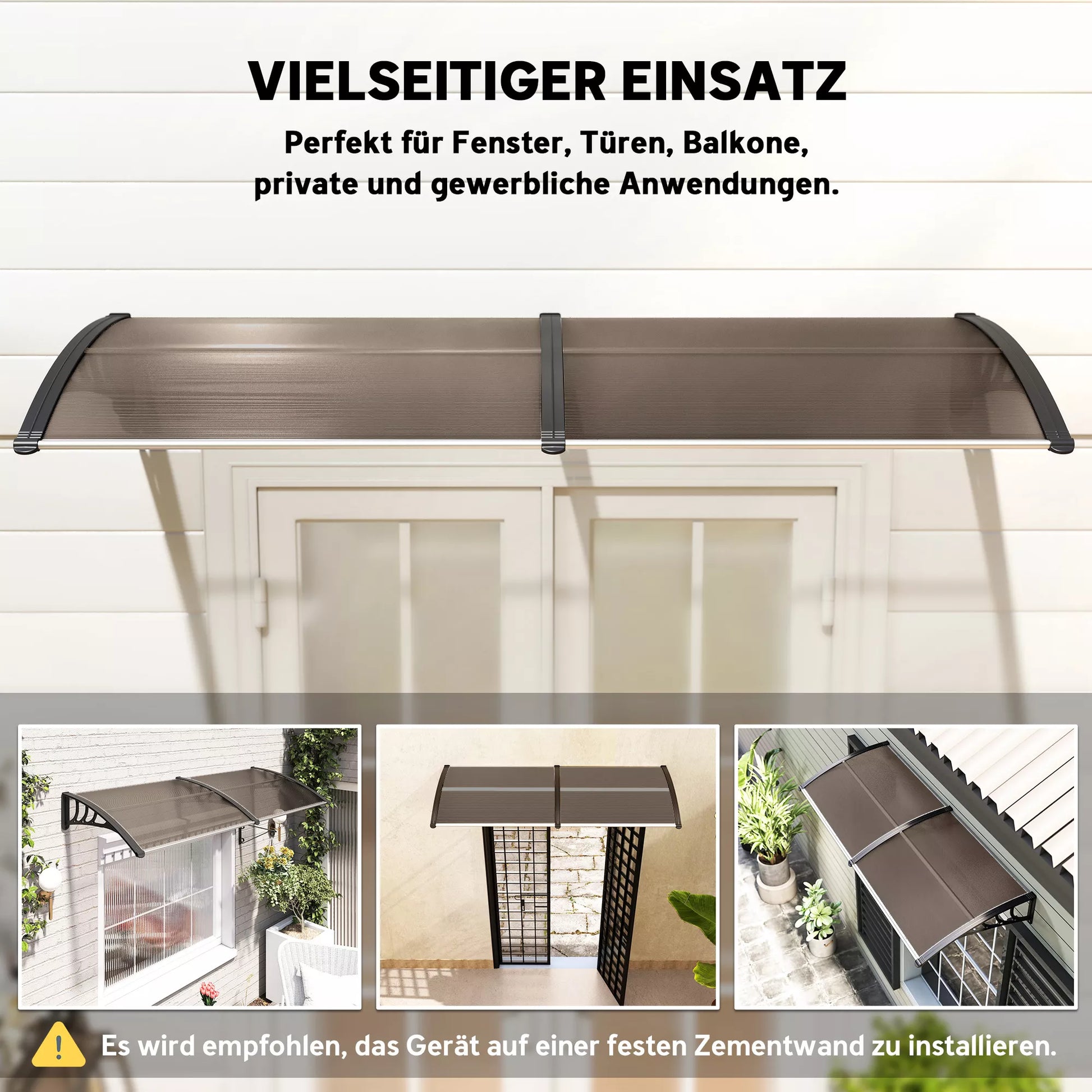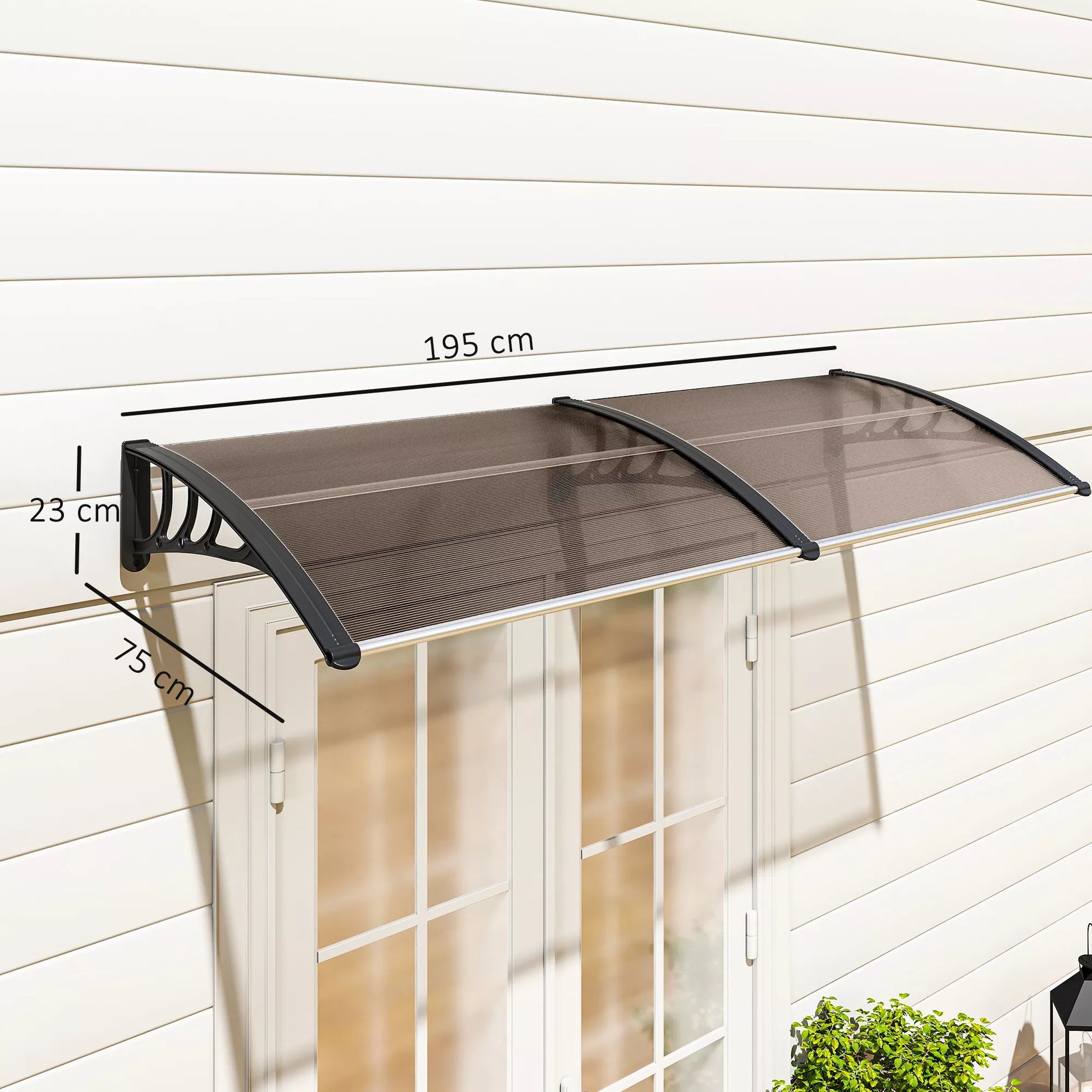 - ✔ Išlenktas pagrindinis polikarbonato skydas, atsparus lietui ir sniegui, puikiai tinkantis prie jūsų durų ir langų