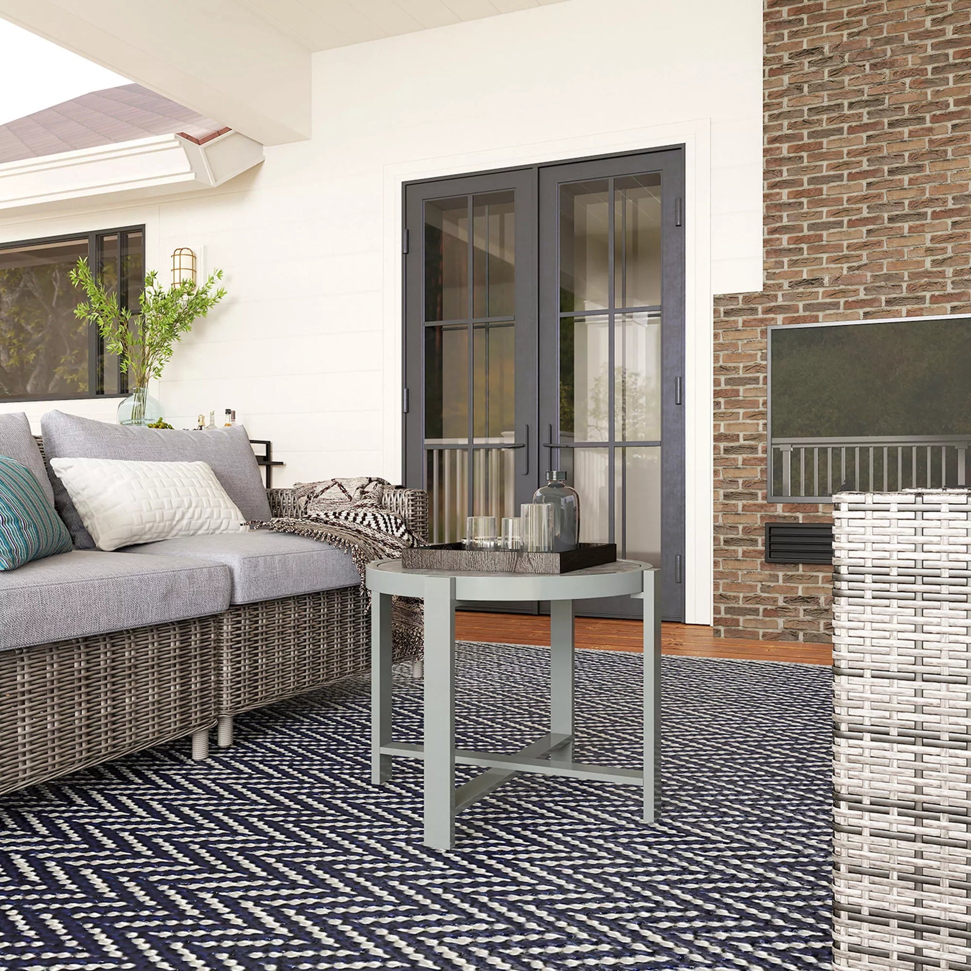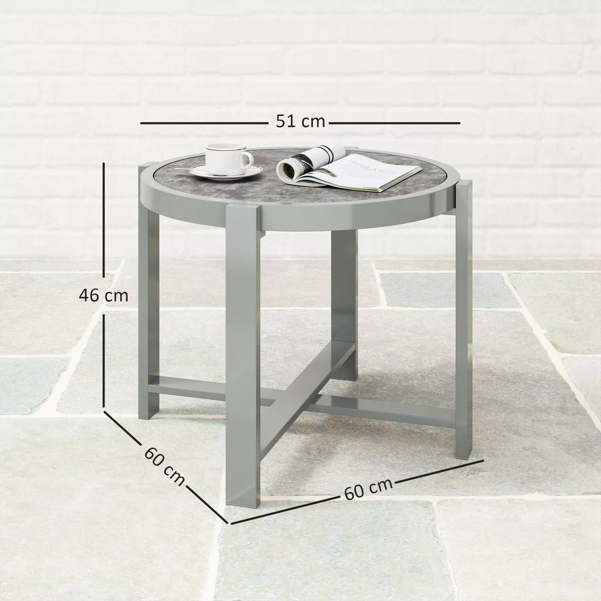 Apvalus lauko staliukas, atsparus oro sąlygoms, aliumininis balkono staliukas su pilka marmuro išvaizda