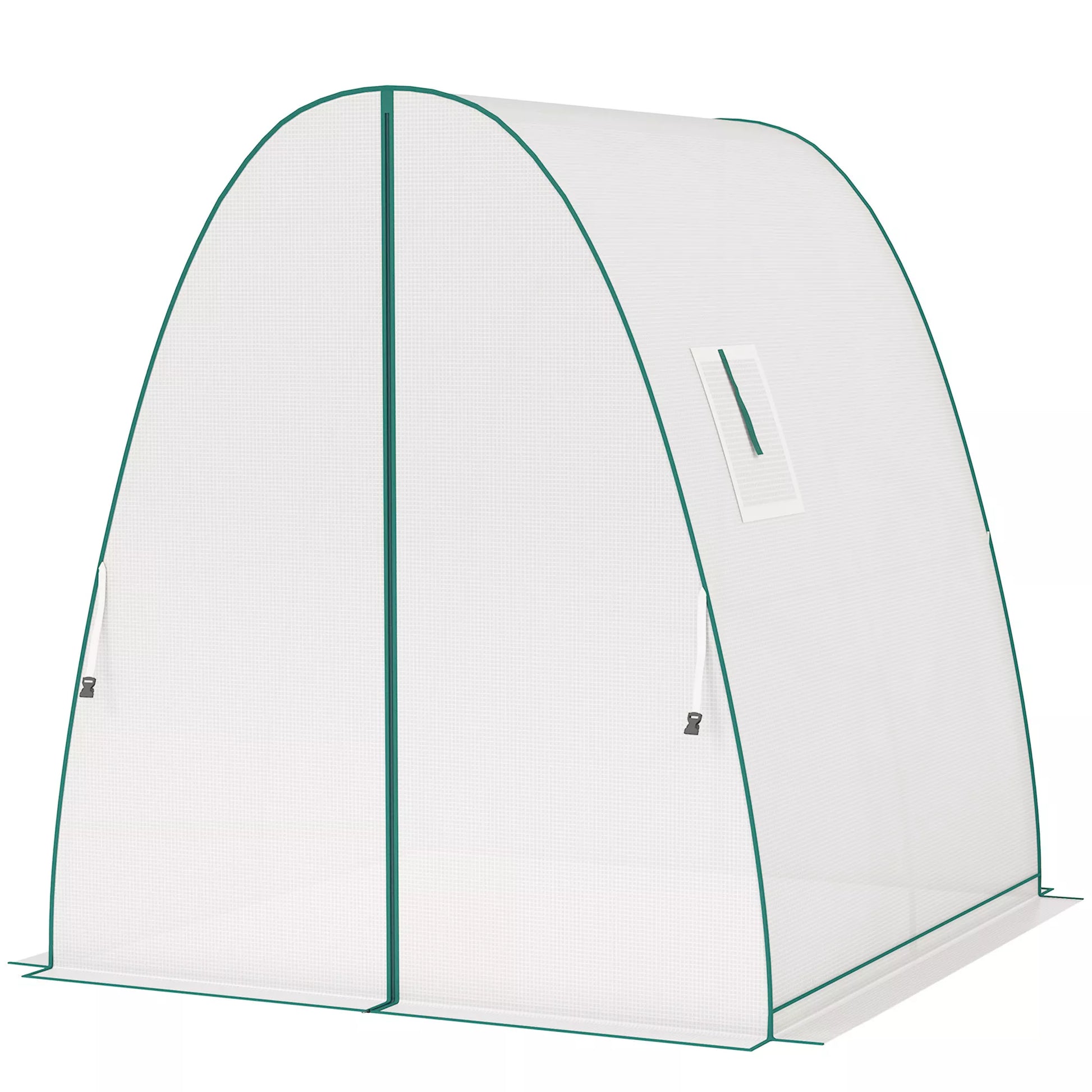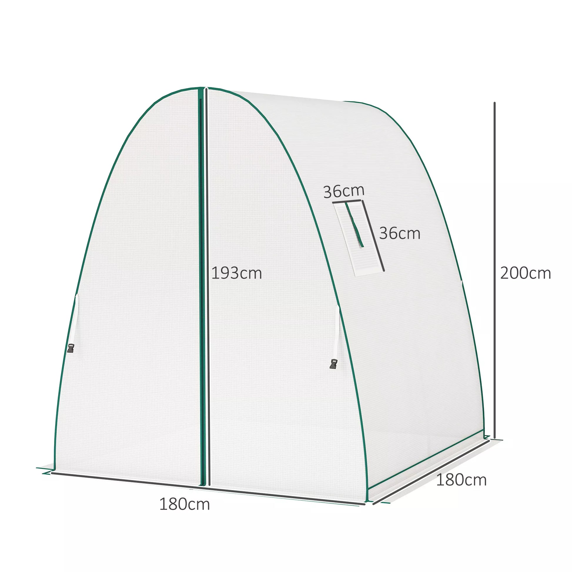 Lankinis šiltnamis su smėlio maišais ir plastiko danga, 2 ritininių durų, tinkliniais langais, nešiojamas, 1,8 x 1,8 x 2 m, baltas