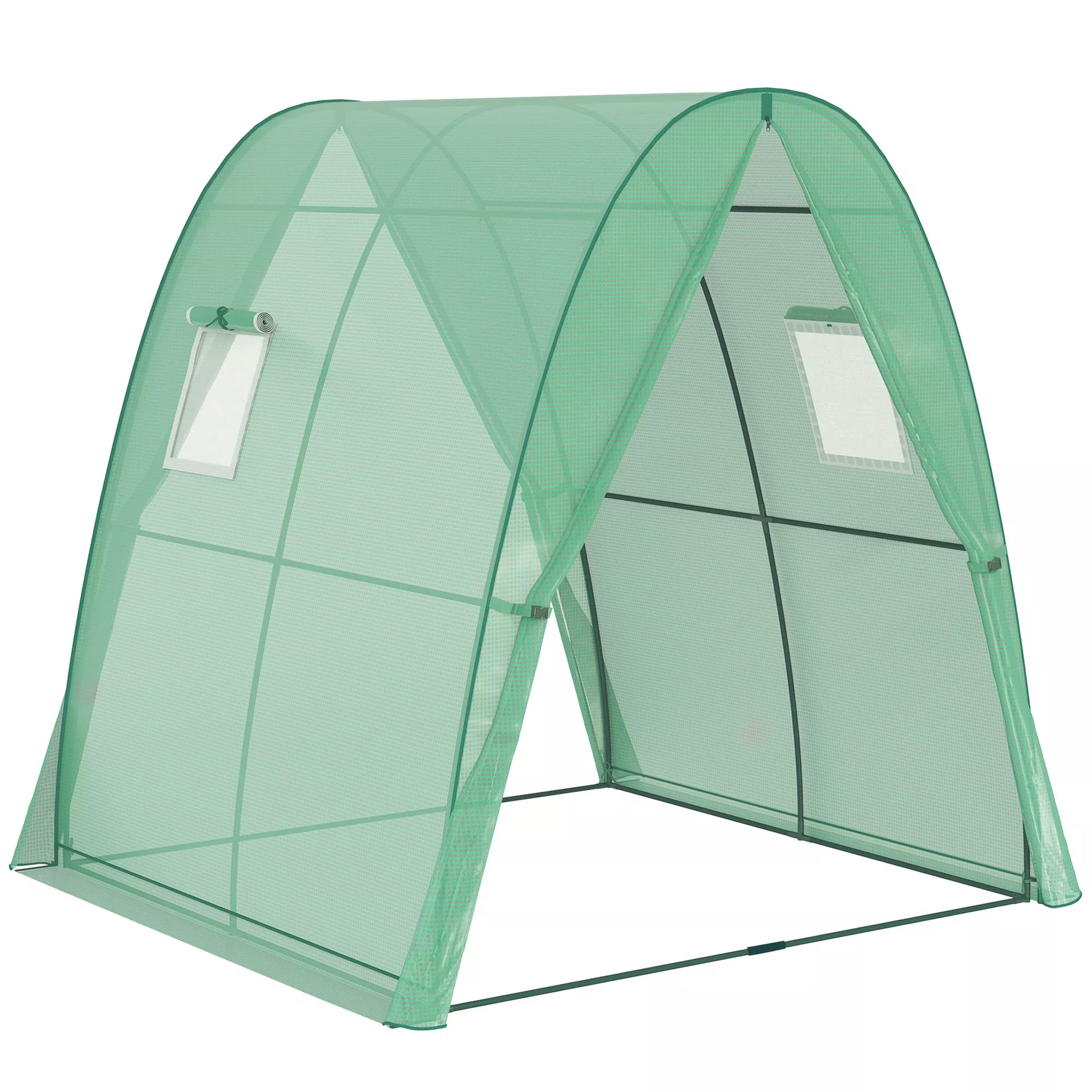 Lankinis šiltnamis su smėlio maišais ir plastikiniu uždangalu, 2 ruloninės durys, tinkliniai langai, nešiojamas, 1,8 x 1,8 x 2 m, žalias
