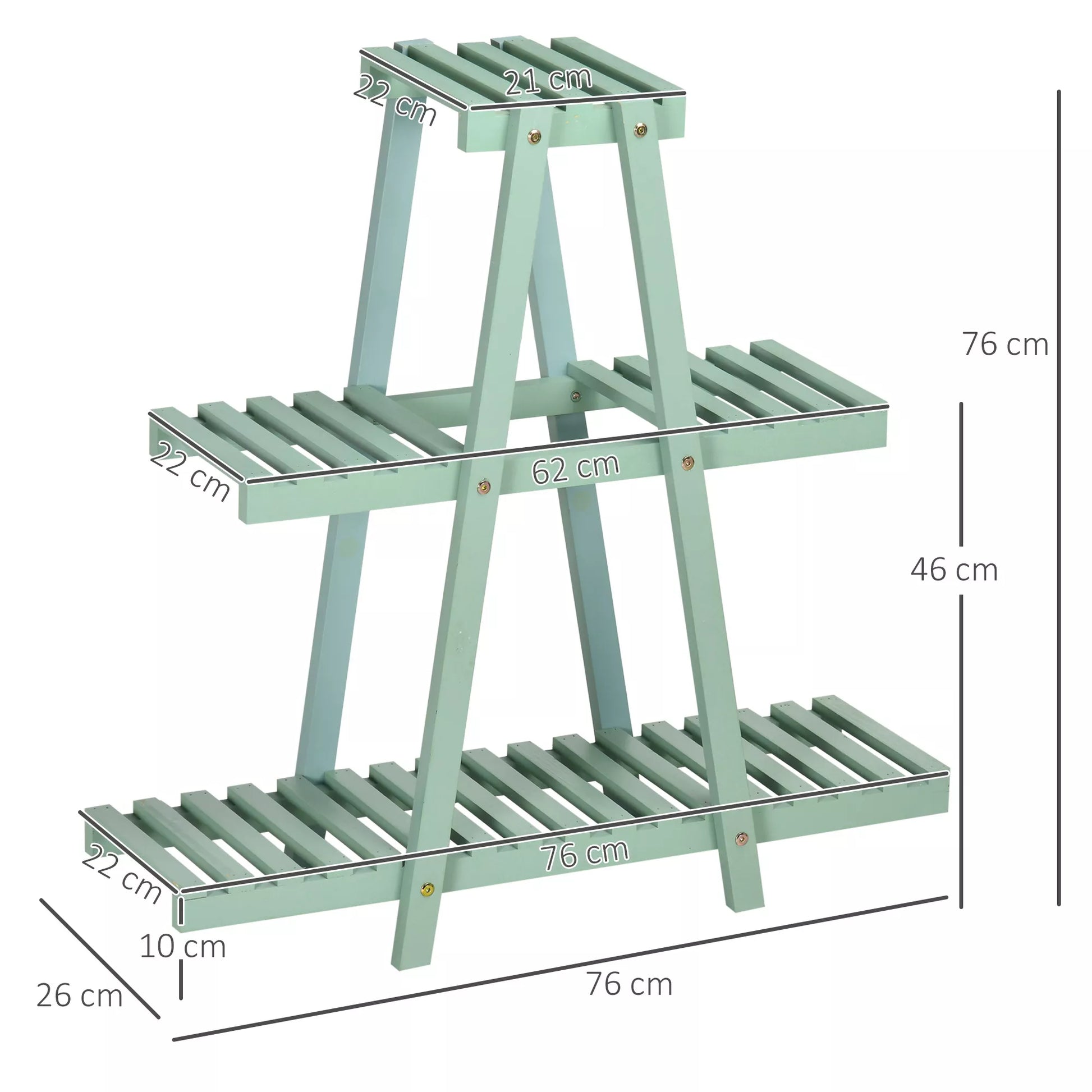 Augalų lentyna su 3 pakopomis, 6 vazonams, atspari oro sąlygoms, 76 cm x 26 cm x 76 cm, šviesiai žalia