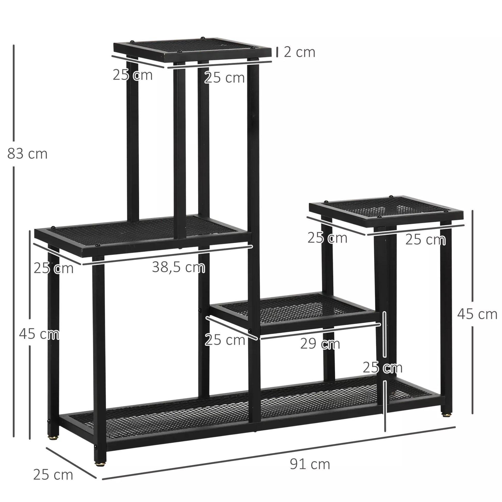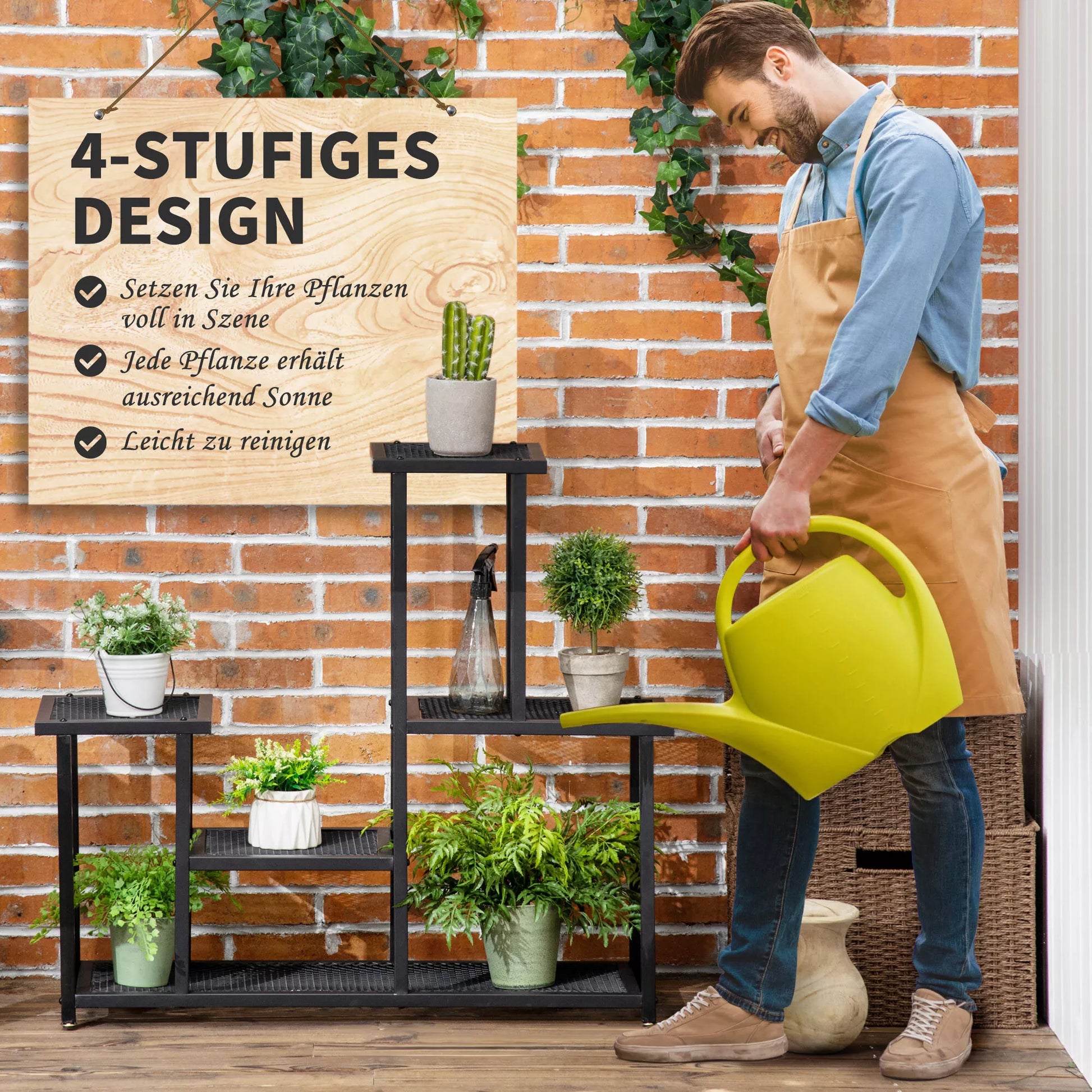 Augalų lentyna su 4 lentynomis, atspari oro sąlygoms, gėlių stovas, 91 cm x 25 cm x 83 cm, juoda