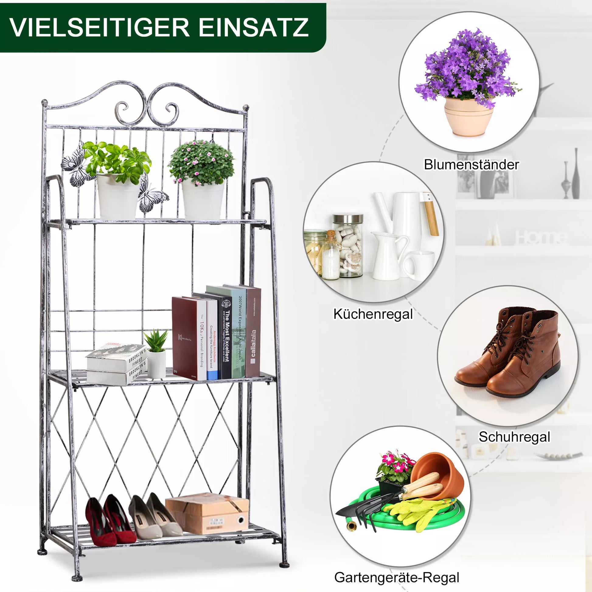 Ideali dovana mėgstantiems sodininkauti ir augalų mylėtojams! Šis augalų stovas su mielais drugeliais yra praktiška ir dekoratyvi gėlių lentyna jūsų balkonui, sodui, terasai ar prieškambariui. Nerūdijančio metalo konstrukcija yra lengvai prižiūrima, patvari ir gali būti sulankstyta, taupant vietą. Ant trijų didelių lentynų galėsite grožėtis savo mėgstamais augalais jų garbingose vietose.