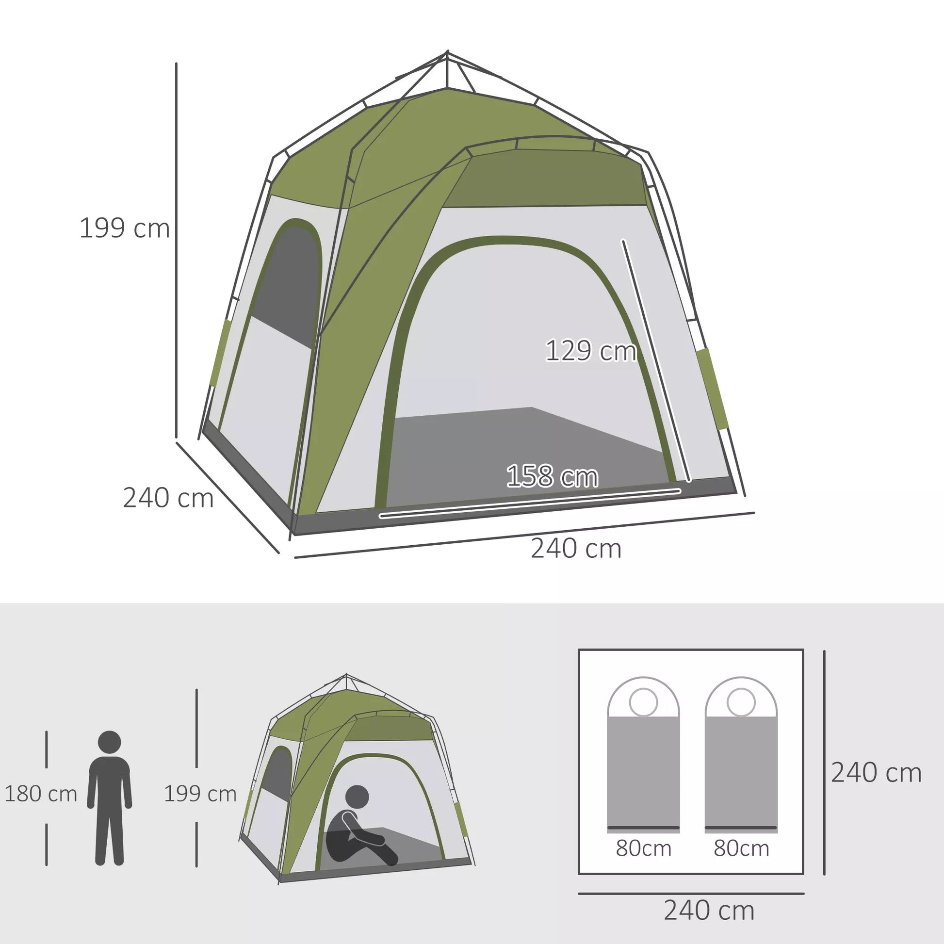 Automatinė pop-up palapinė, atspari oro sąlygoms, hidraulinis slėgio mechanizmas, 240 cm x 240 cm x 199 cm, žalia+pilka