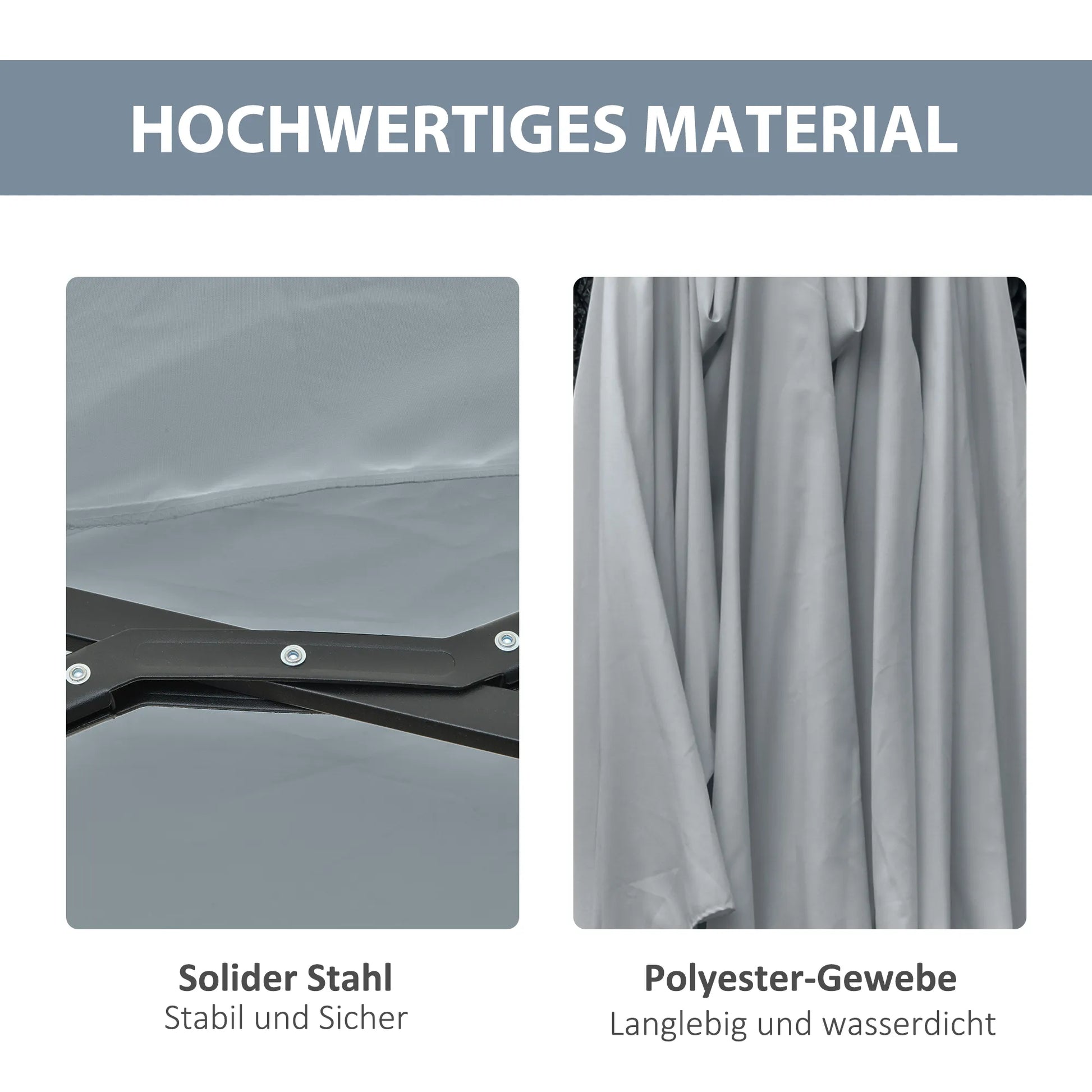Saulės skėtis su LED saulės moduliu 4,5m, dvigubas sodo/terasos skėtis, ovalus, šviesiai pilkas+juodas