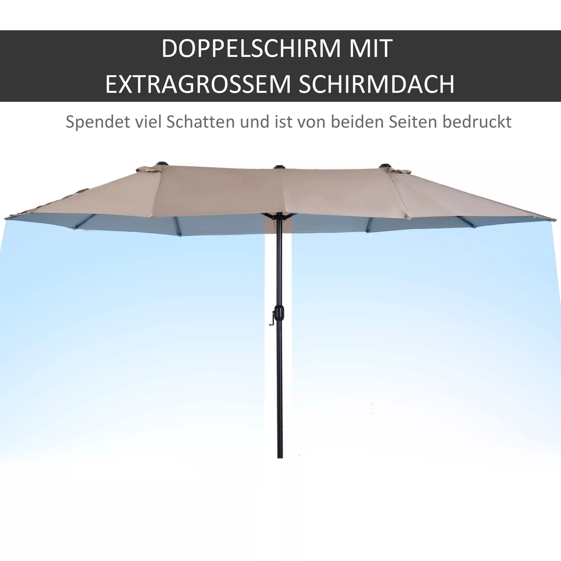 Dvigubas skėtis nuo saulės 455 x 270 cm Sodo skėtis su rankiniu keltuvu ovalus stabilus metalinis stiebas Turgavietės skėtis Dvigubas skėtis nuo saulės Terasos skėtis Apsauga nuo saulės paplūdimiui, balkonui, terasai, sodui Šviesiai kavos