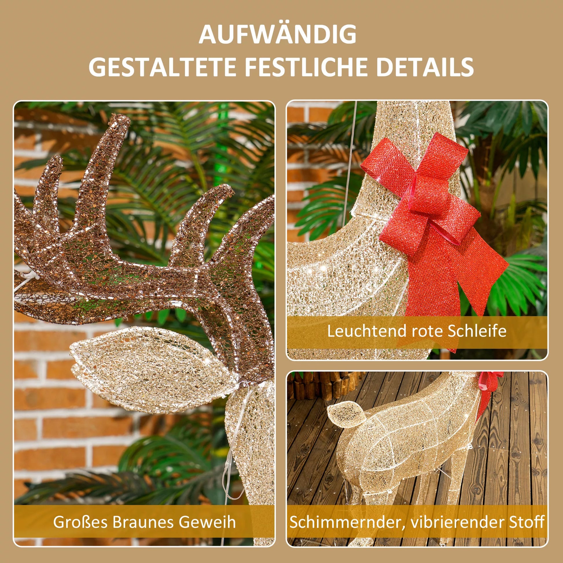 - ✔ Kalėdinis apšvietimas: elnias su dideliais ragais ir raudonu kaspinėliu