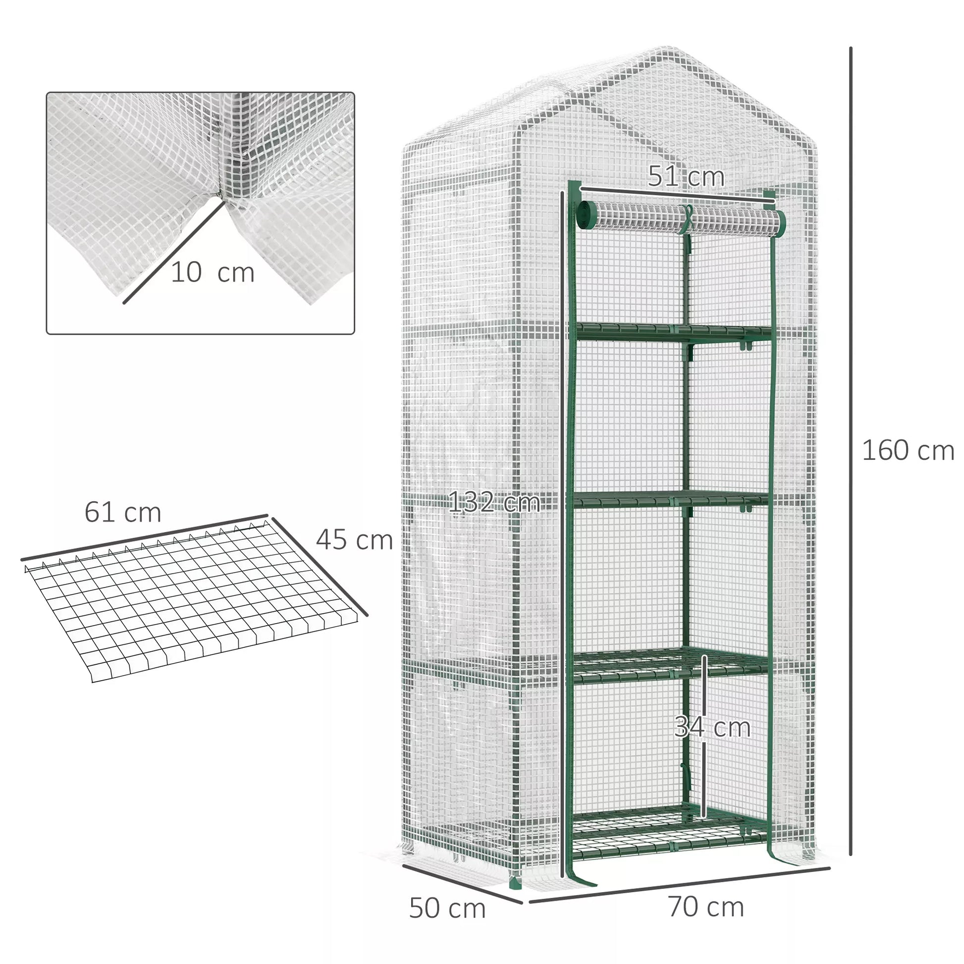 Folijos šiltnamis, mini šiltnamis, augalų namelis, daigykla, 4 lentynos, 70 x 50 x 160 cm, balta