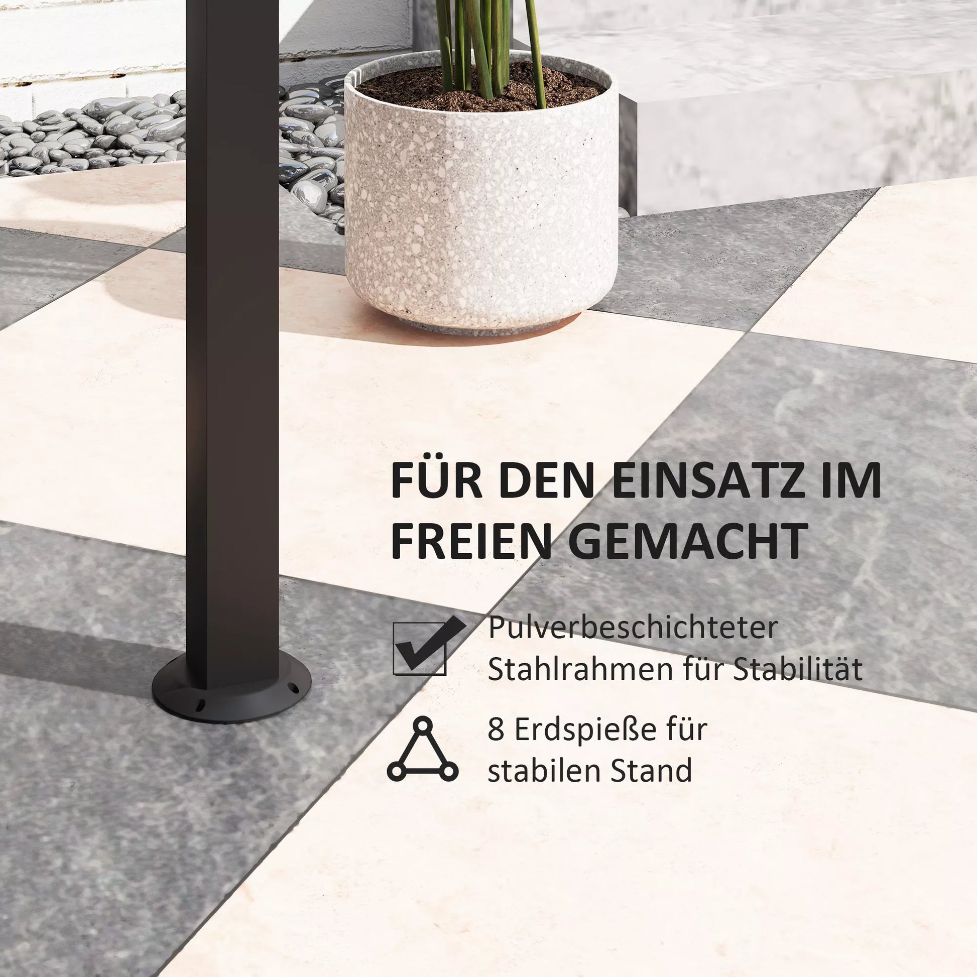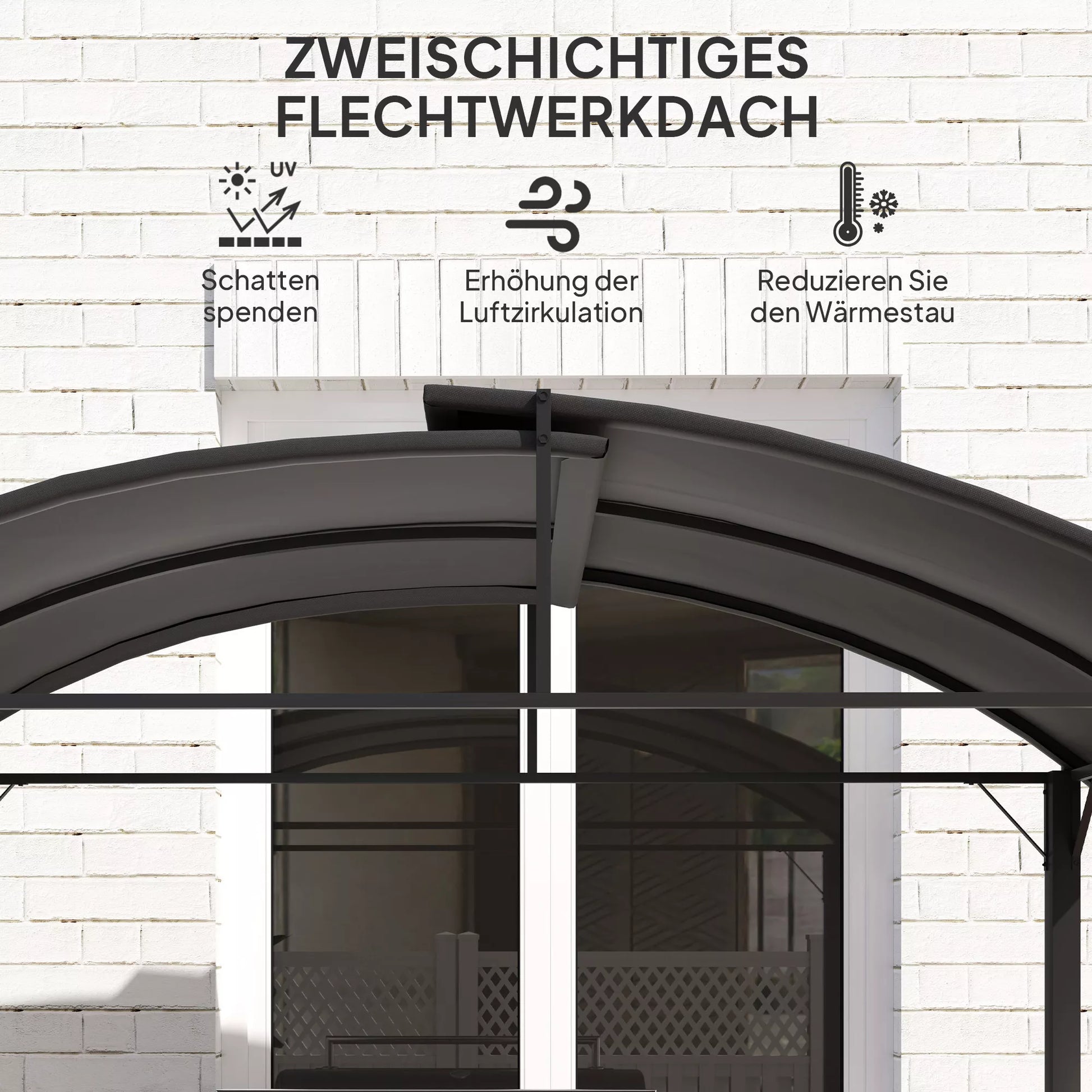Niekada neleiskite atšiauriai saulei sugadinti jūsų grilio vakarėlio! Atraskite šią išmaniąją grilio pavėsinę – jūsų nepakeičiamą pagalbininkę prie grilio: Poliesterio stogas apsaugo jus nuo saulės, o dvi šoninės lentynos suteikia daug vietos lėkštėms, prieskoniams ir kitiems grilio reikmenims. Dėl atskirų stogo elementų dūmai gali laisvai išeiti, o jūs esate saugiai apsaugoti nuo UV spindulių. Taip grilio mėgavimasis tampa pavėsyje!