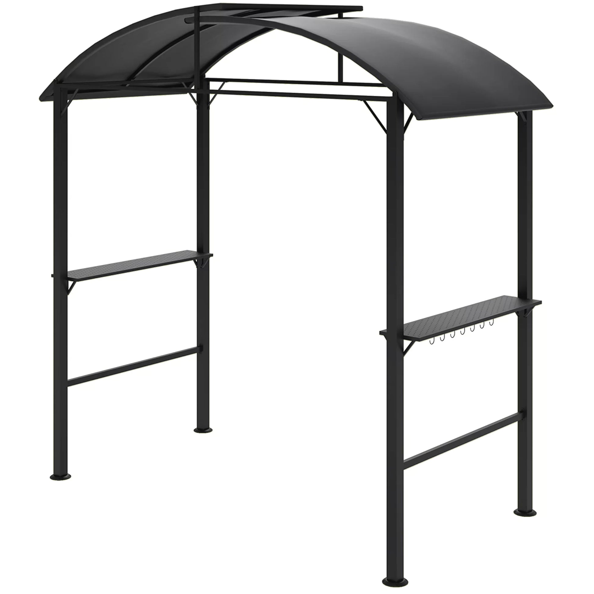 Grilio pavėsinė, 2 šoniniai staliukai, kabliukai, plieninis rėmas, 1,1 x 2,3 m, tamsiai pilka
