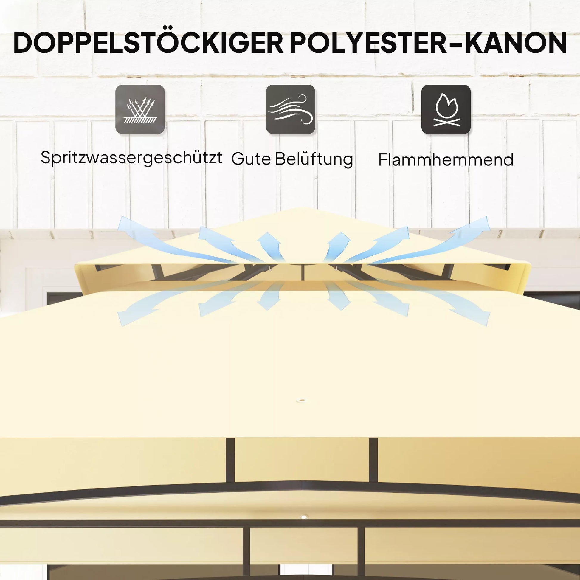 Atraskite naują kepimo ant grotelių patirtį su grilio paviljonu! Dvigubo sluoksnio grilio paviljono stogas skatina oro cirkuliaciją ir efektyviai išsklaido karštį bei dūmus, kad kepdami ant grotelių galėtumėte išlikti vėsūs. Ugniai atsparus, vandeniui atsparus stogas su keturiomis drenažo angomis ir tvirtas plieninis rėmas užtikrina, kad jūsų grilis bus saugus ir apsaugotas nuo oro sąlygų. Puikiai tinka bet kokiems sodo poreikiams, pritaikytas griliams iki 180 cm pločio.
