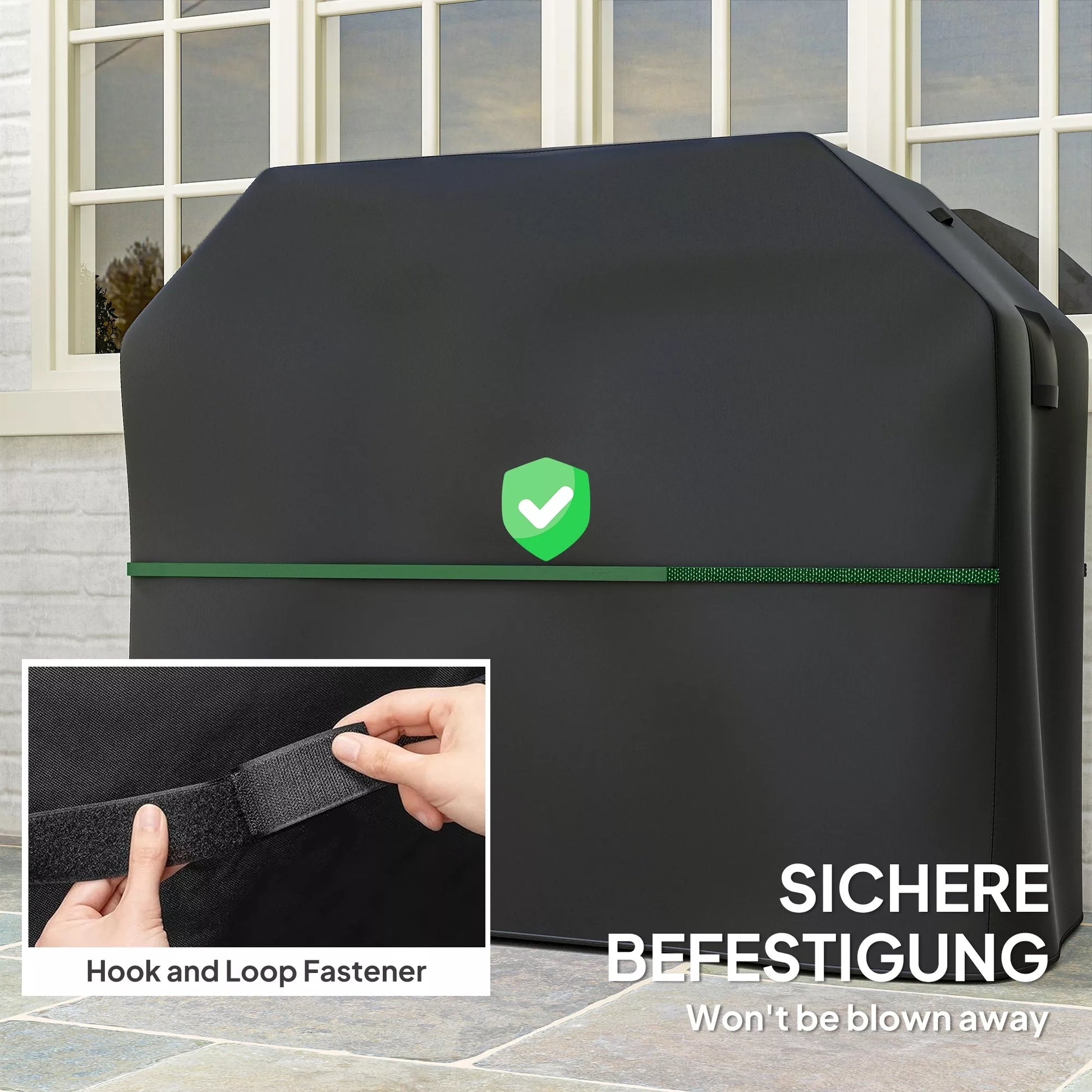 - ✔ Lipnios juostelės pritvirtina kepsninės uždangalą vėjuotomis sąlygomis