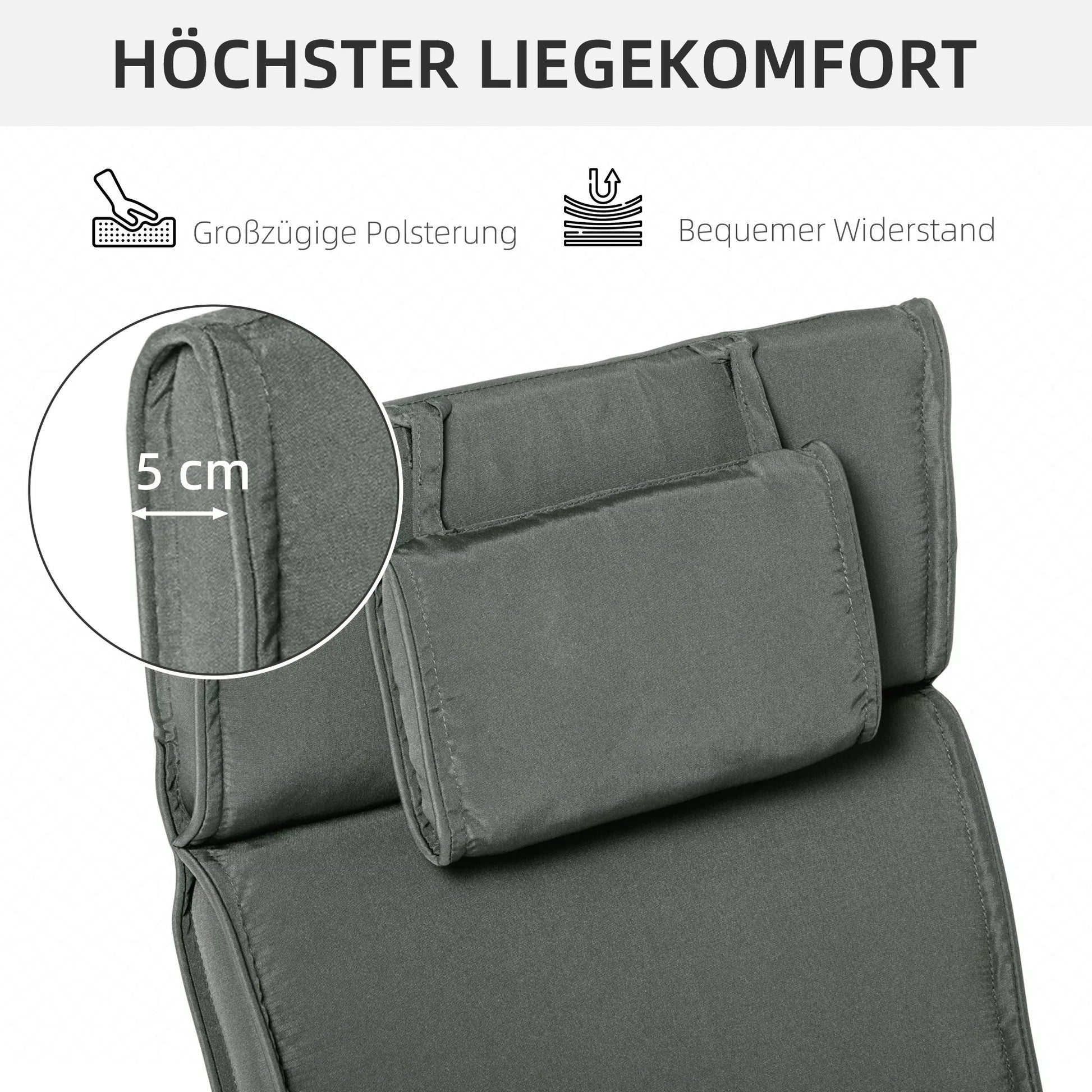 Gultuvės čiužinys/pagalvėlė sodo gultui su nuimama pagalvėle, pilkos spalvos, 198 x 53 x 5 cm. TIK PAGALVĖLĖ