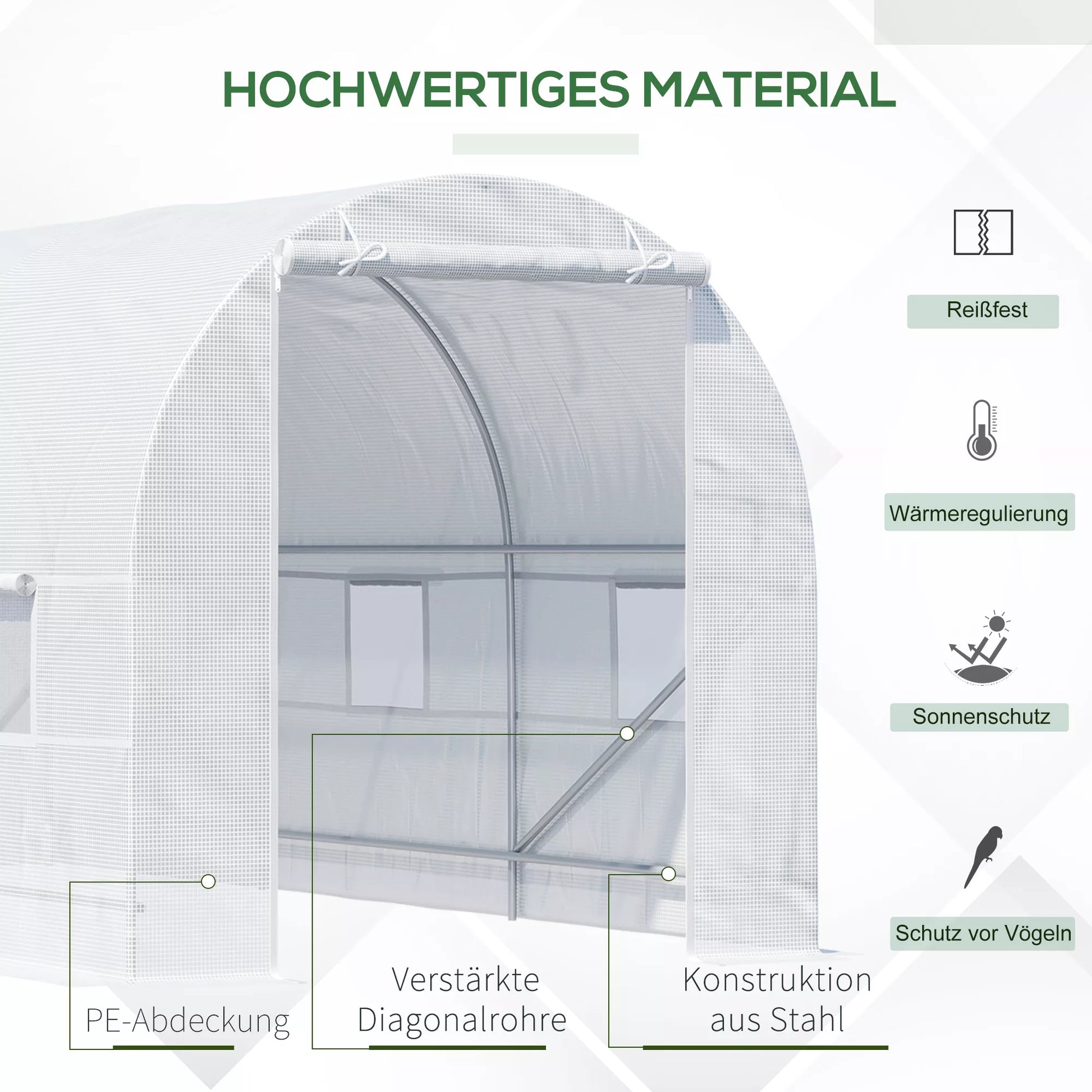 - ✔ Atspari, ilgaamžė ir šalčiui atspari plėvelė apsaugo jūsų augalus nuo oro sąlygų