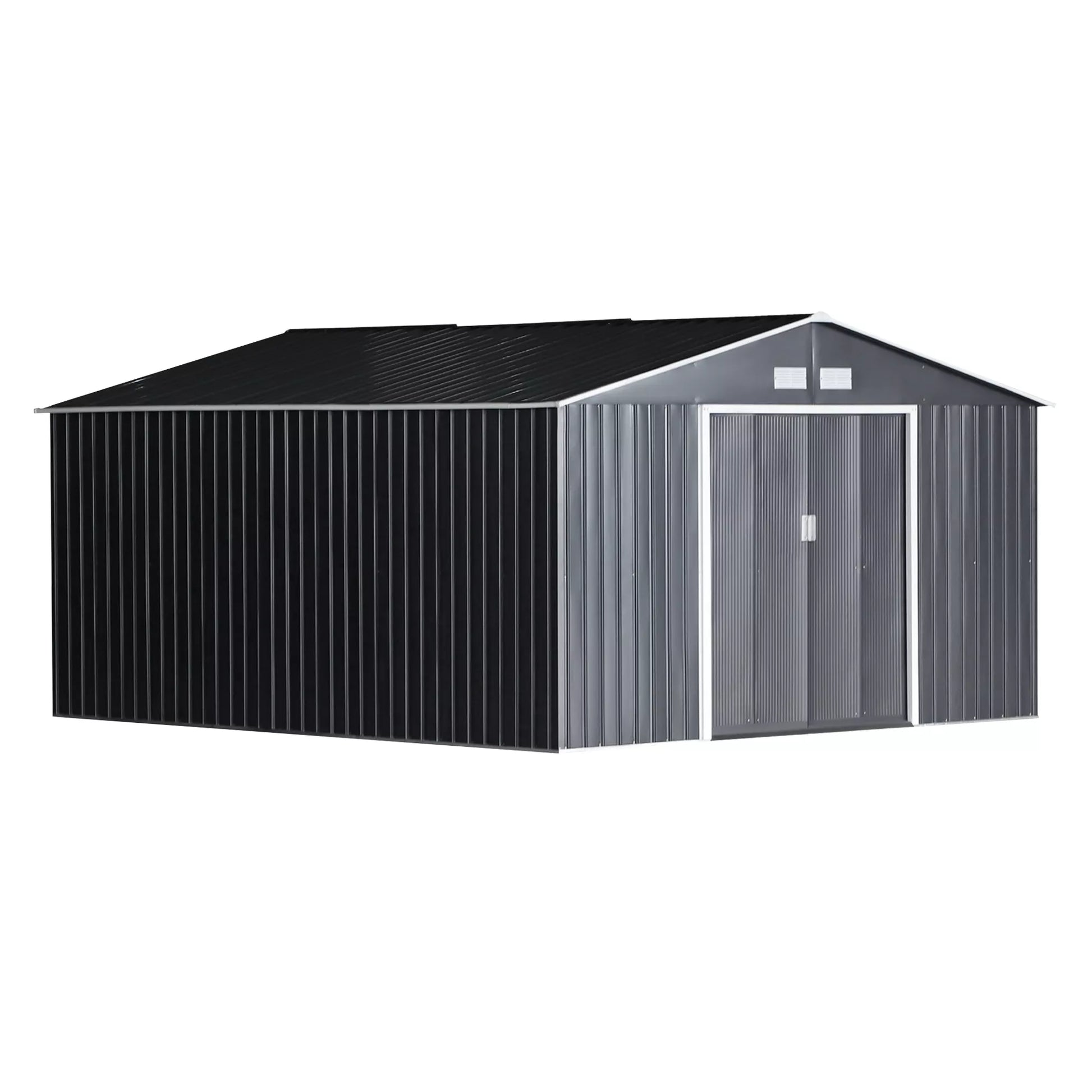 Sodo namelis įrankiams, atsparus oro sąlygoms, su ventiliacijos langais, stumdomomis durimis, plieninis, anglies pilkumo