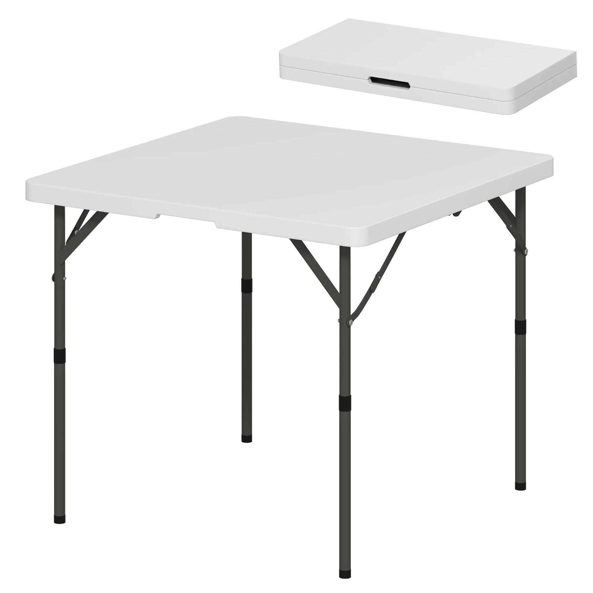 Sulankstomas pikniko stalas, reguliuojamas dviejose aukštyje, skirtas sodų vakarėliams, stovyklavimui, plastikas, metalas, baltas