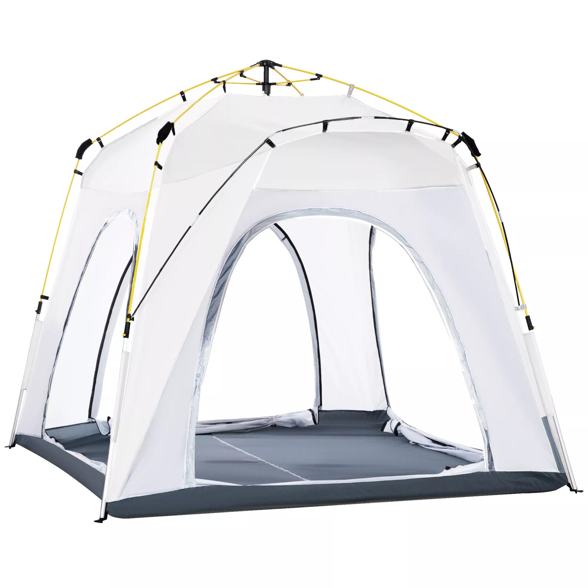 Ši 3 sezonų kempingo palapinė idealiai tinka dienos išvykoms, nakvynei ir pradedantiesiems keliautojams. Dėl iš anksto sumontuotų strypų šią kupolinę palapinę lengva išskleisti ir paversti parengtu prieglobsčiu! Norėdami sulankstyti palapinę saugojimui ar transportavimui, tiesiog paspauskite mygtuką palapinės viršuje. Patirkite gamtą su šia puikia kupolo formos palapine! DĖMESIO: Netinka ekstremalioms oro sąlygoms, pvz., stipriam vėjui, smarkiam lietui ar sniegui.