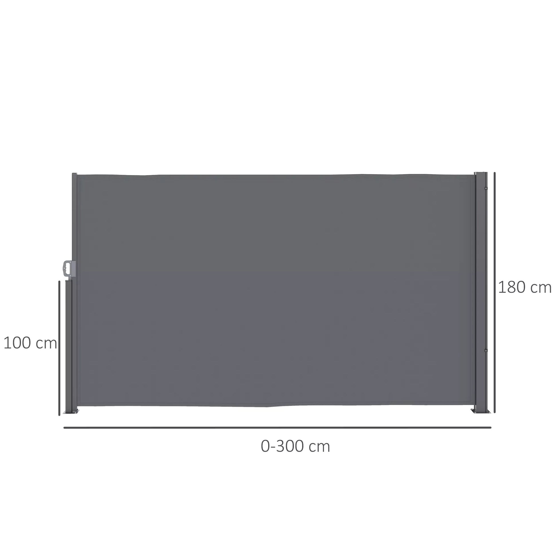 Ištraukiama šoninė markizė, nepermatoma, skirta privatumui su sieniniu laikikliu, padengta, 300x180cm, tamsiai pilka