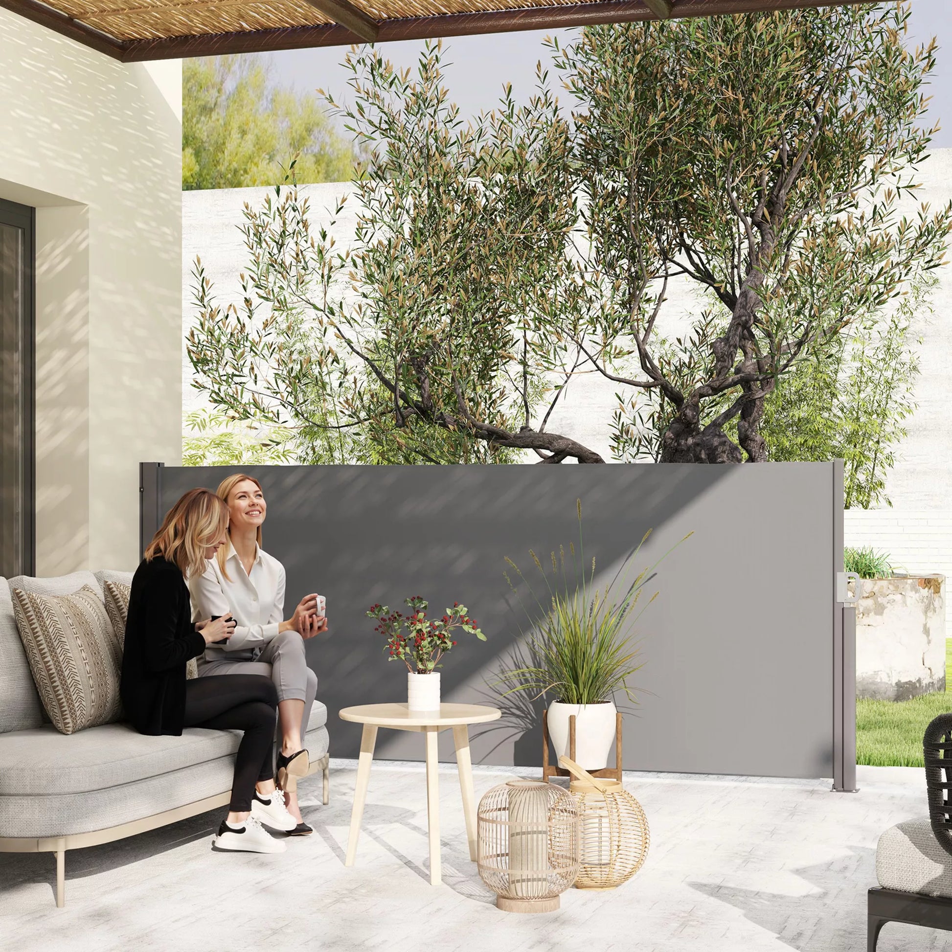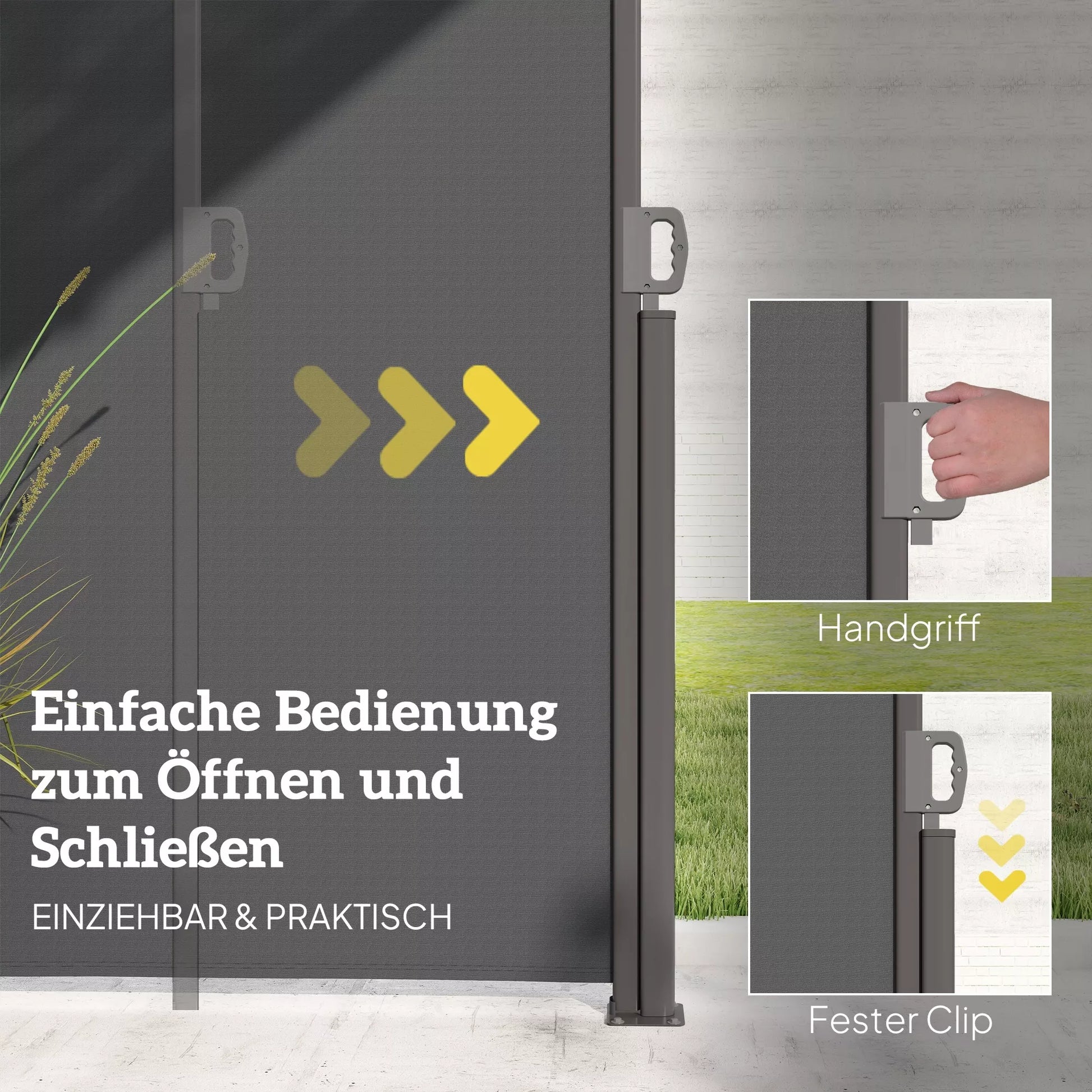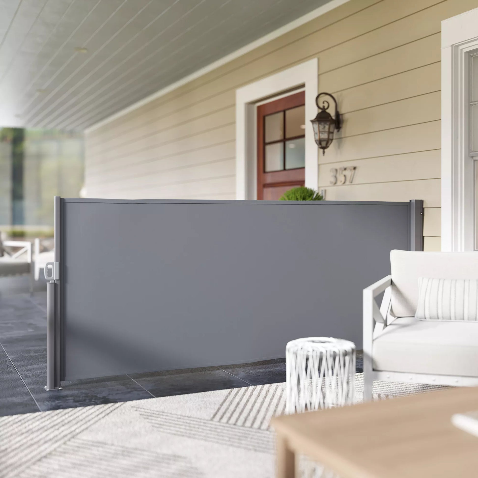 Patirkite universalias lauko erdves su ištraukiama šonine markize. Ištraukiama apsauga nuo saulės, pagaminta iš 180 g/m² didelio tankio poliesterio, apsaugo nuo UV spindulių ir drėgmės. tvirtas aliuminio rėmas atlaiko bet kokį orą. Puikiai tinka kaip privatumas arba erdvės daliklis, terasos vėjo pertvara sklandžiai įsilieja į balkoną ar terasą, derinant stilių ir praktiškumą.