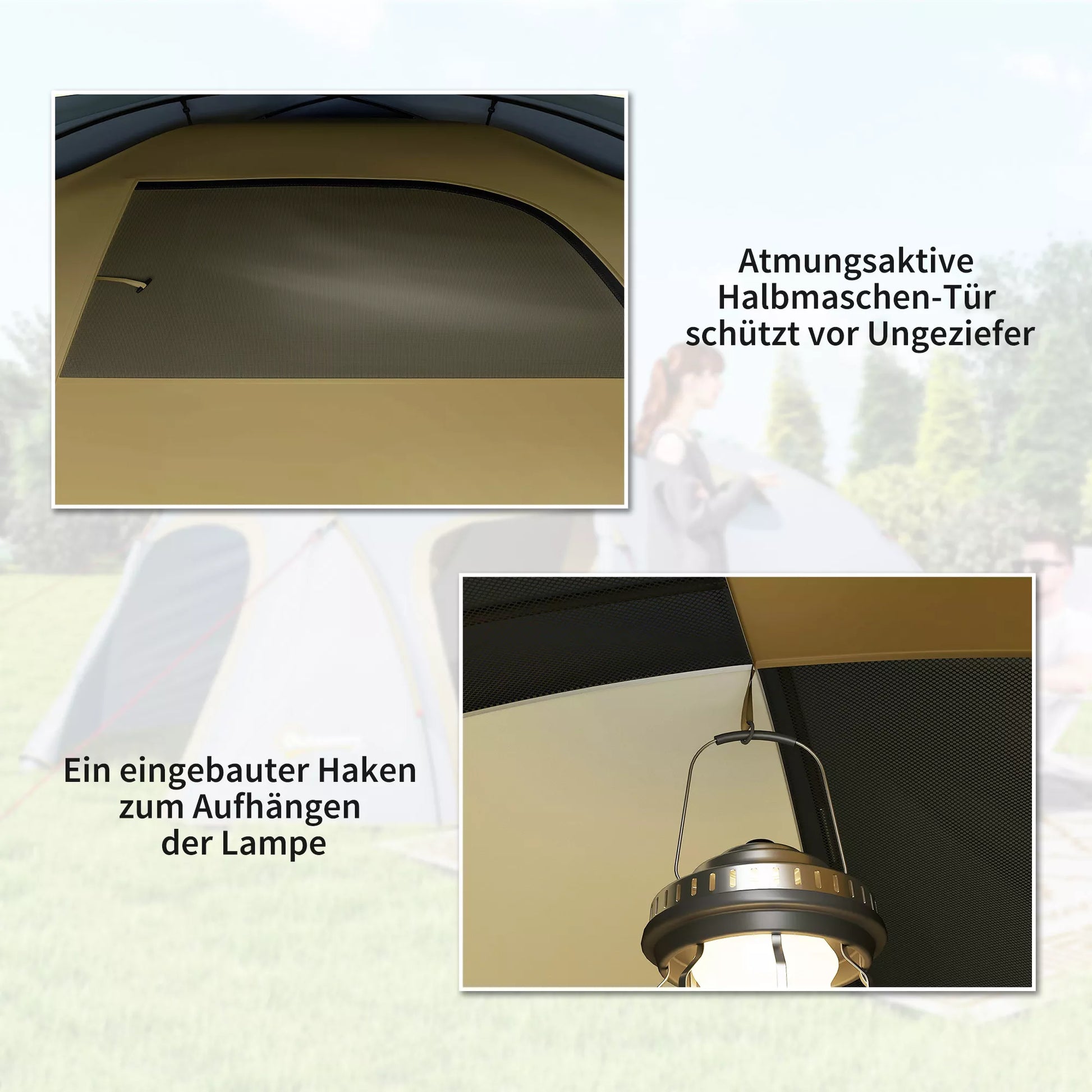 Patirkite laukinę gamtą su 4 asmenų kempingo palapine. Ji turi erdvų miegamąjį ir naudingą prieangį jūsų įrangai. Pagaminta iš 190T poliesterio, ši tunelinė palapinė garantuoja puikų atsparumą vandeniui ir UPF50+ apsaugą – ideali visoms kempingo ar trekingo kelionėms. Komfortas ir patogumas sujungti į vieną protingą tunelinės palapinės dizainą!