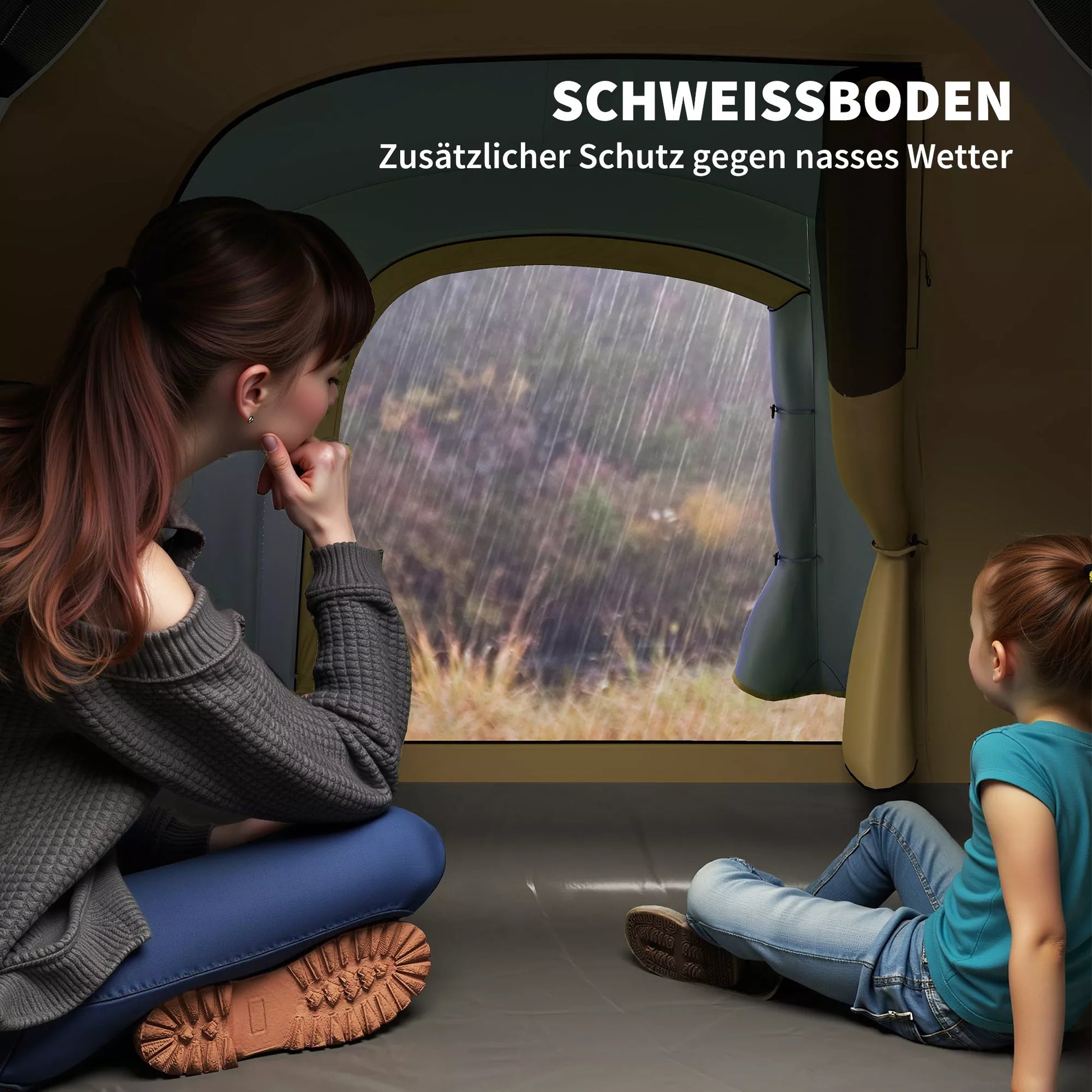 - ✔ Ši tunelinė palapinė talpina keturis žmones, turi atskirą miegamąjį ir prieangį daiktams laikyti