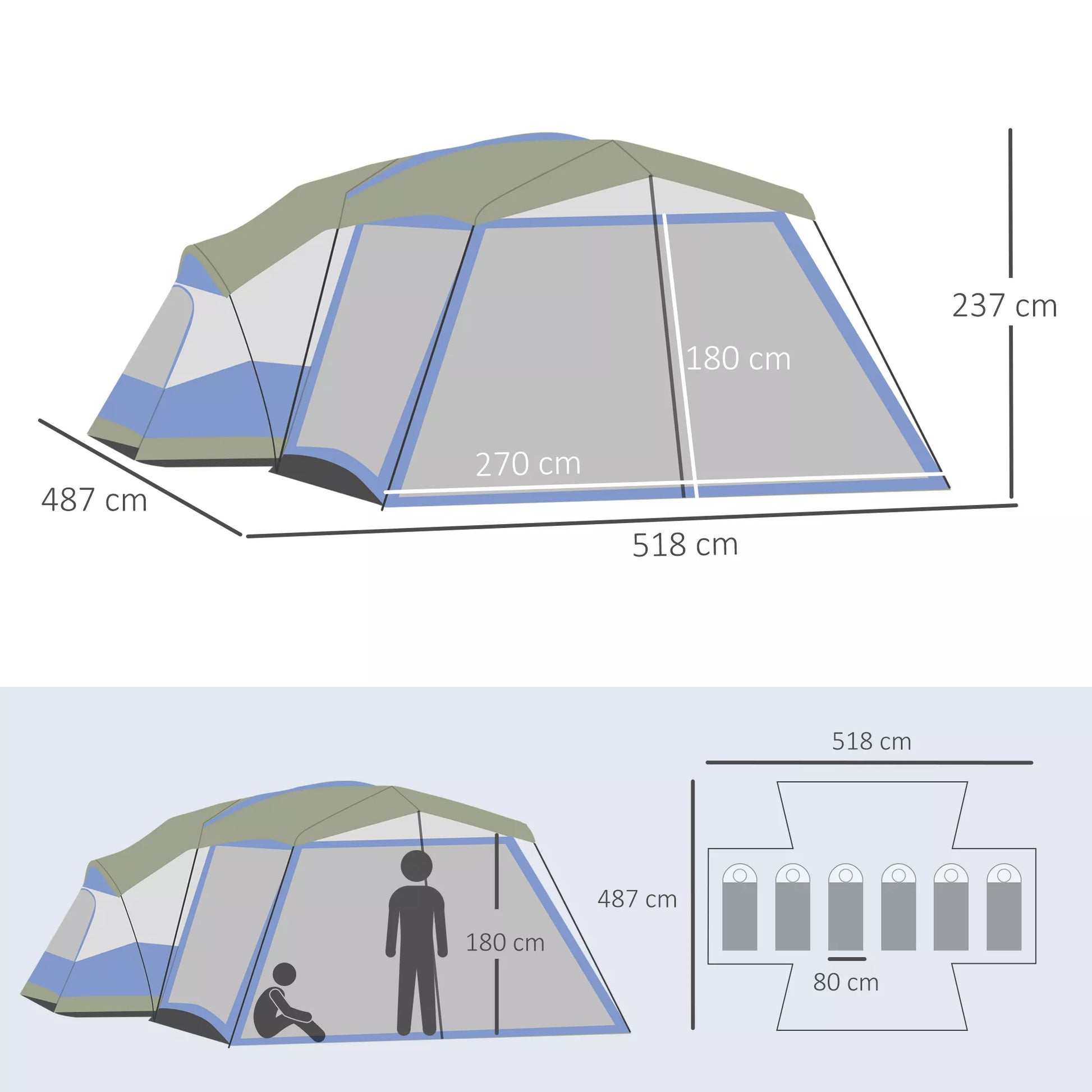 Kempingo palapinė 6–8 asmenims Šeimos palapinė su prieangiu 2 langai Kupolinė palapinė Dirbtinė oda 3000 mm Trekingui Festivalis Stiklo pluoštas Mėlyna 518 x 487 x 237 cm