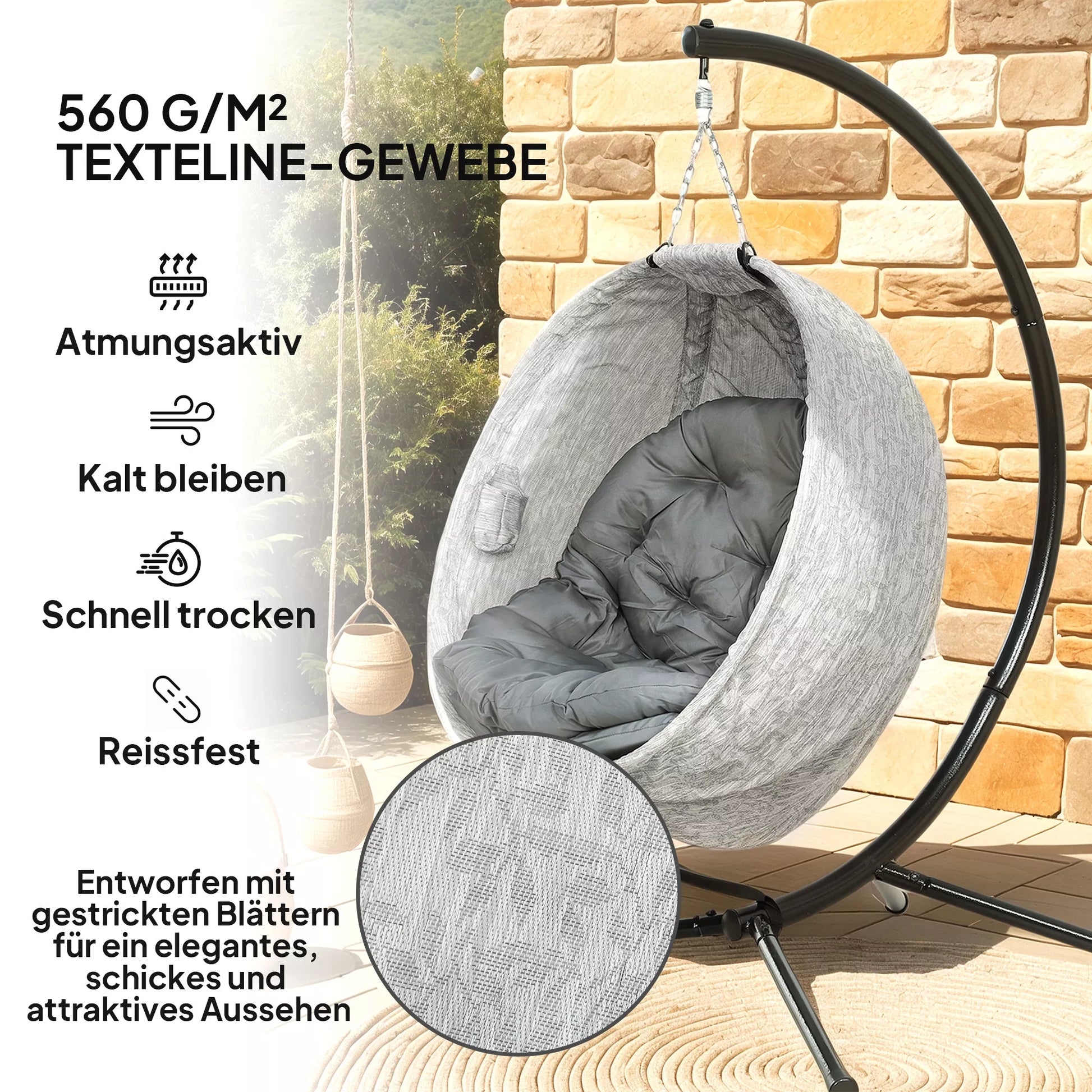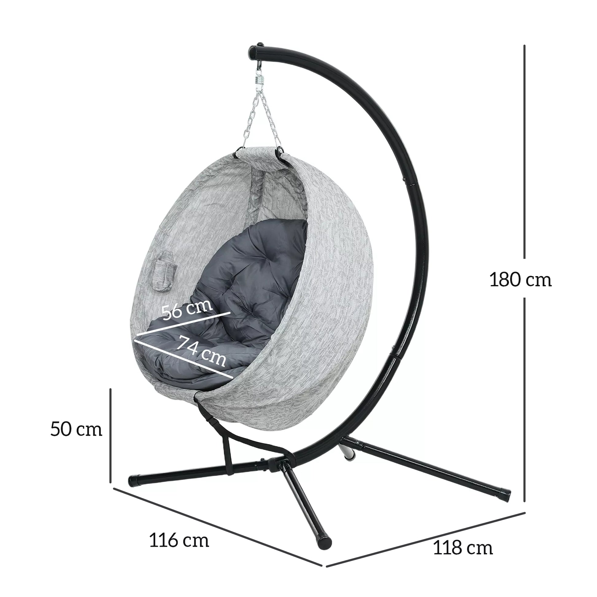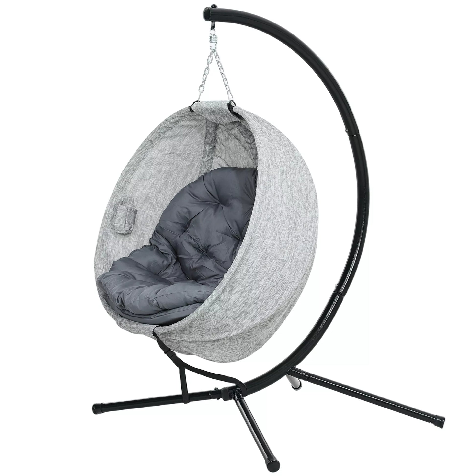 Kiaušinio formos pakabinamas krėslas su supimosi funkcija ir sulankstomu krepšiu, sodo kėdė, puodelio laikiklis, pilkos spalvos