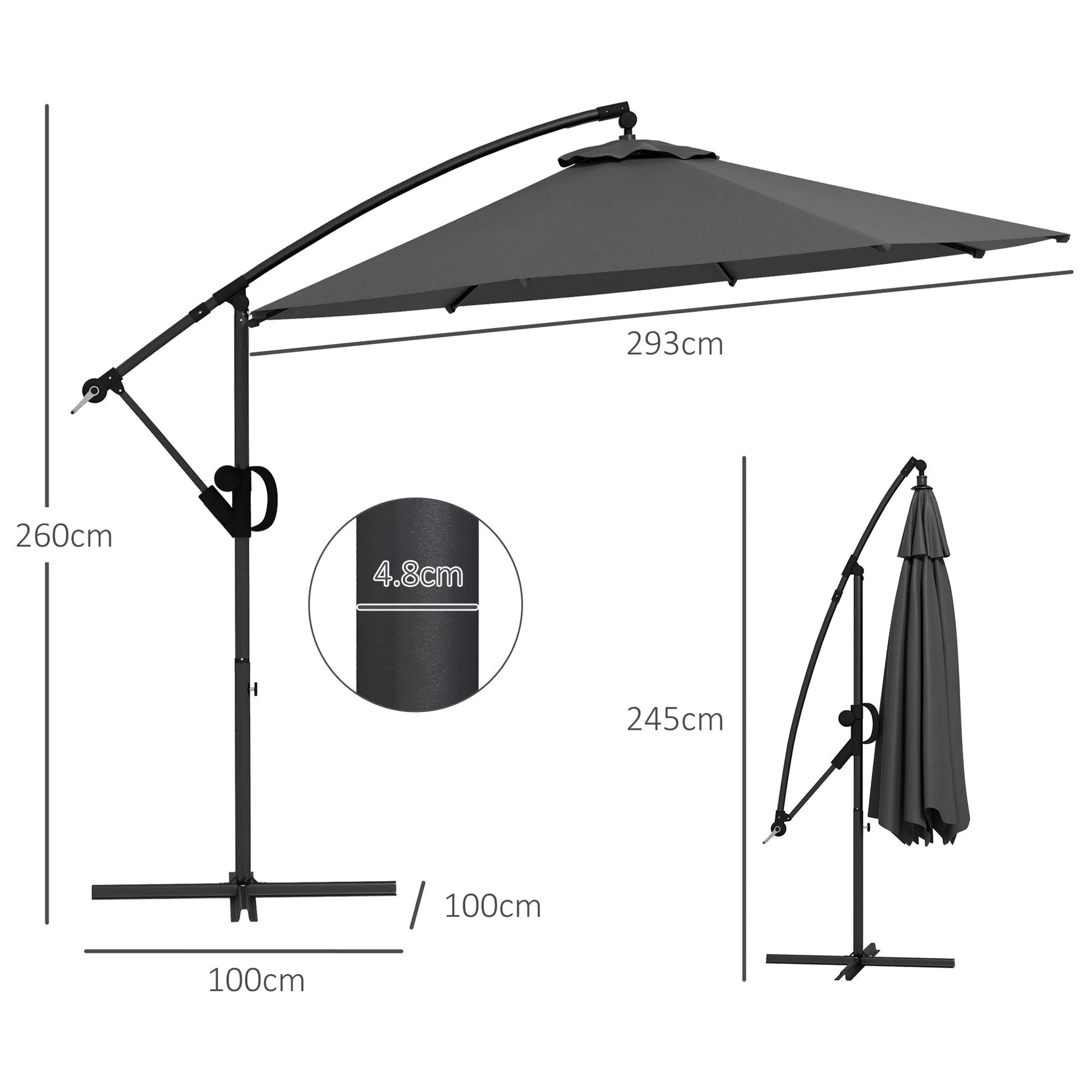 Konsolinis skėtis nuo saulės, su kryžminiu pagrindu, 293 x 293 x 260 cm, Pilkas