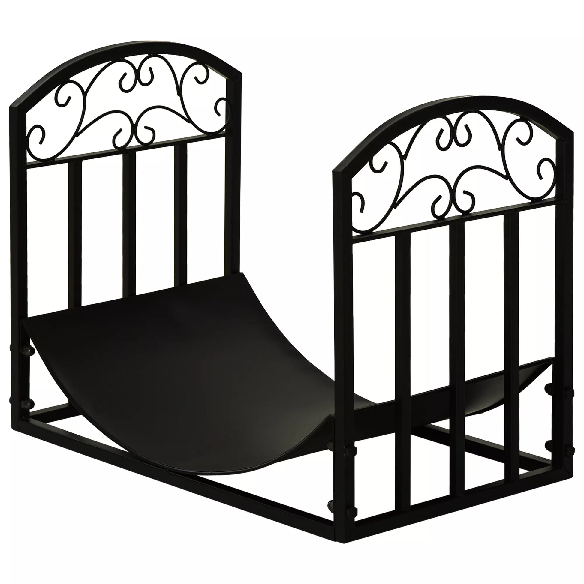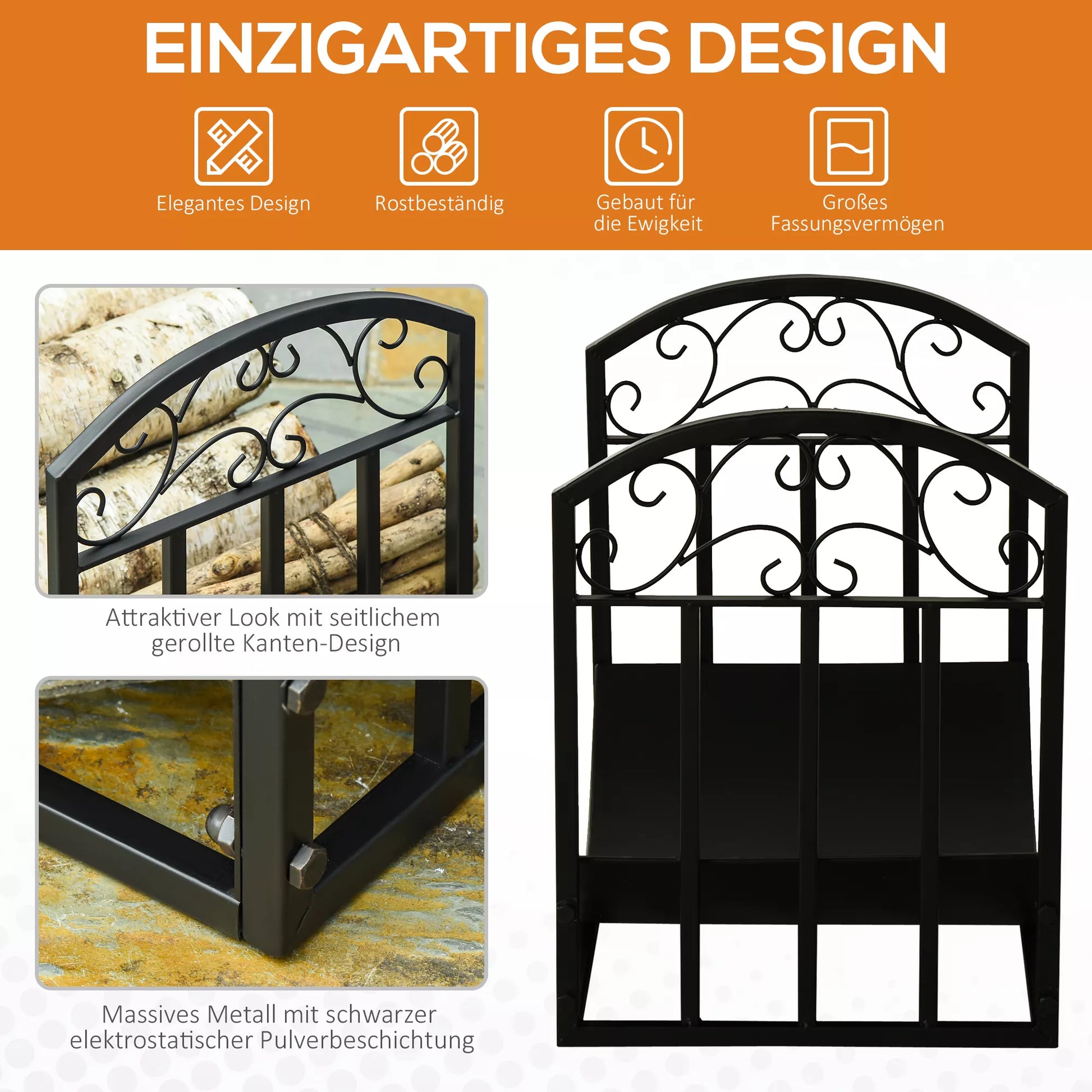 Laikiklis malkoms prie židinio, 60 kg keliamoji galia, metalinis, juodas, 60,5 x 36 x 46,5 cm