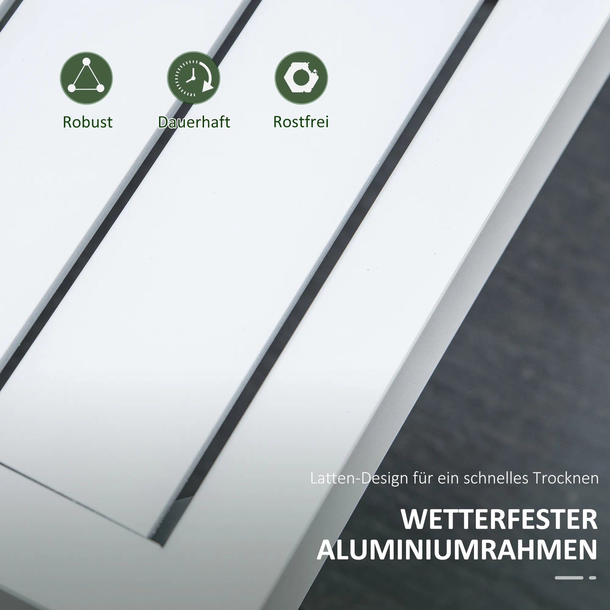- ✔ Stalo ir sėdimosios dalies lentjuostės neleidžia kauptis vandeniui.
