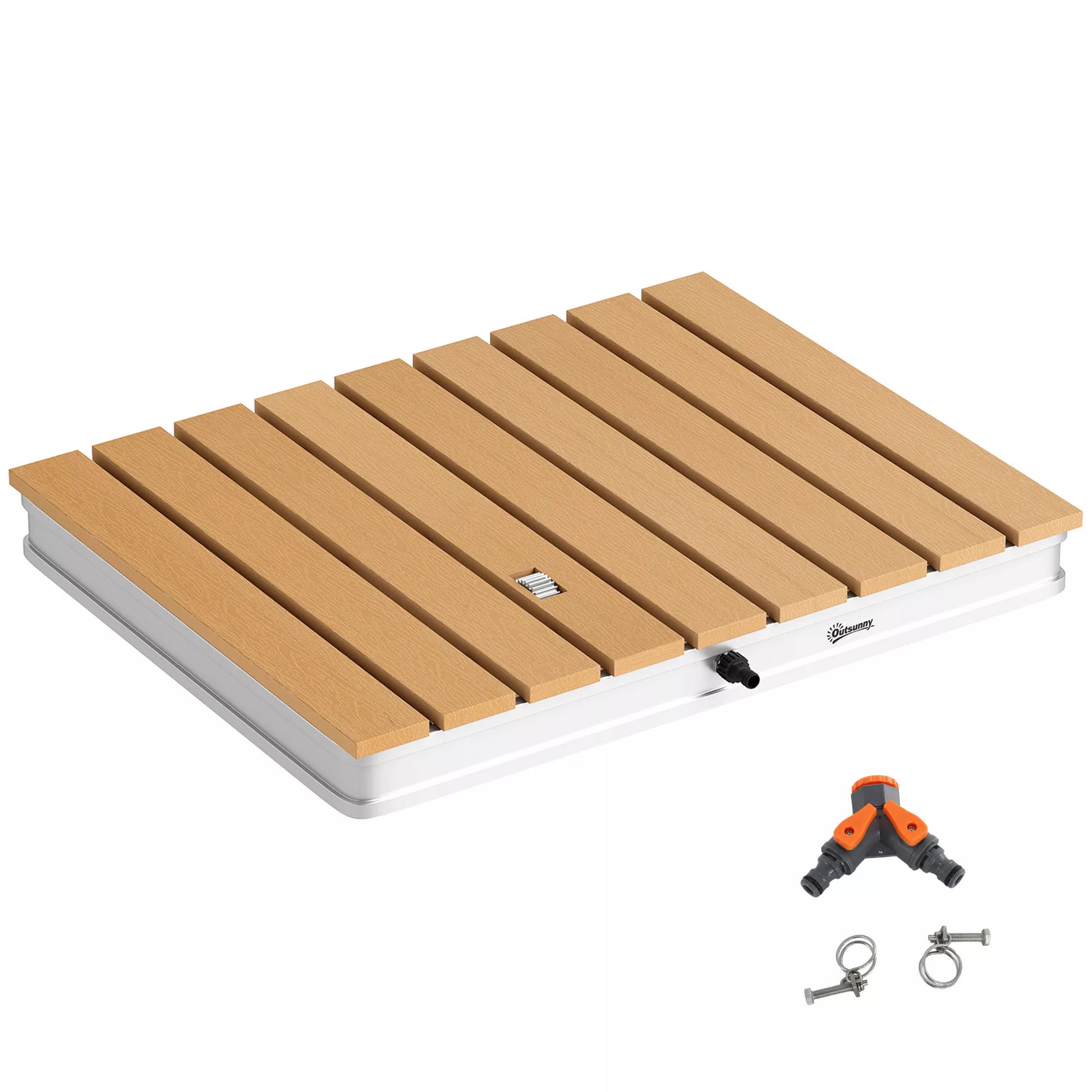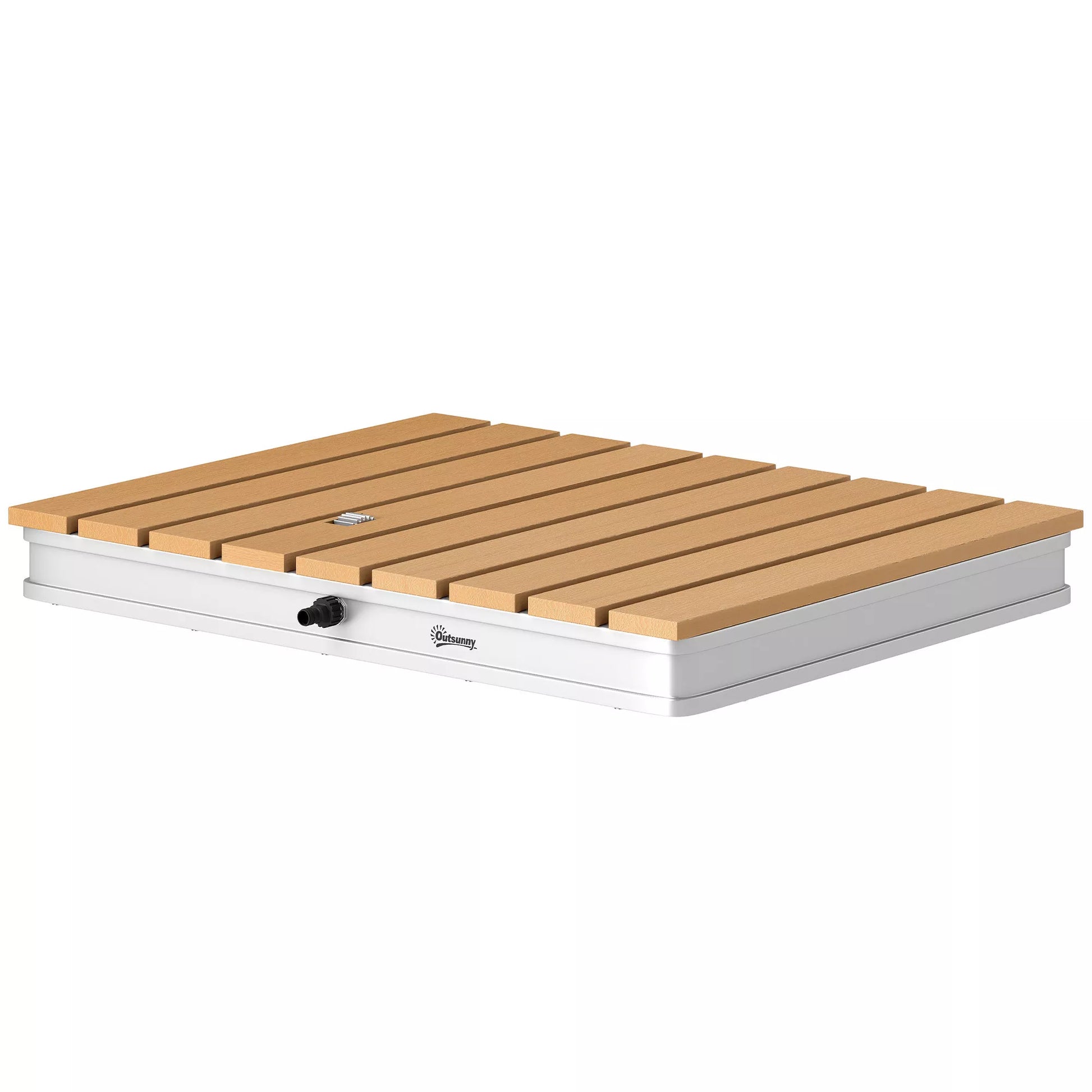 Sodo grindų dušas su reguliuojamu kojiniu pedalėliu, aliuminio, fontano aukštis iki 4 m, 70 x 55 cm, natūralaus medžio