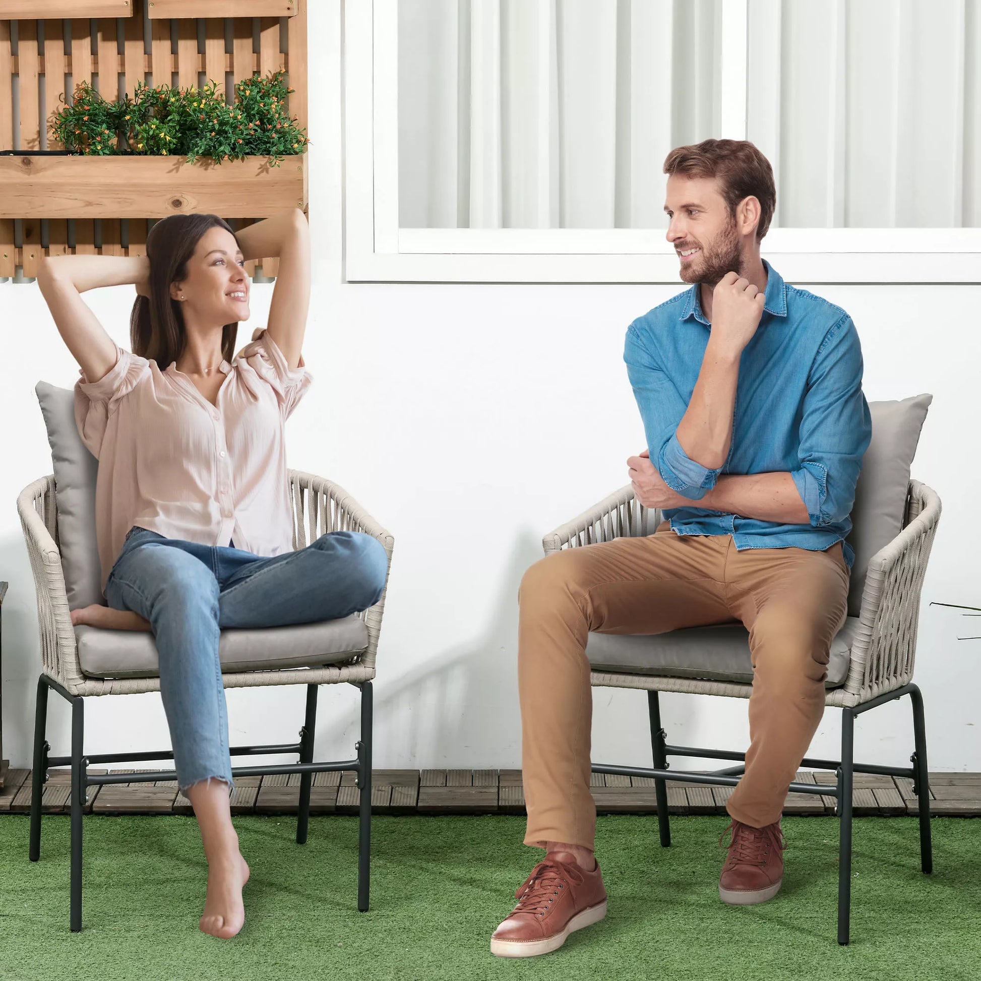 Praleiskite atsipalaiduojančią popietę dviese savo sode su šiais lauko krėslais. Rankų darbo pintas dizainas kartu su plonu rėmu suteikia elegancijos, kuri puikiai dera prie bet kokio interjero ar eksterjero. Sėdimoji ir atlošo pagalvėlės suteikia neprilygstamą sėdėjimo komfortą. Atnaujinkite savo sodo aplinką su mūsų – laisvalaikio krėslais!