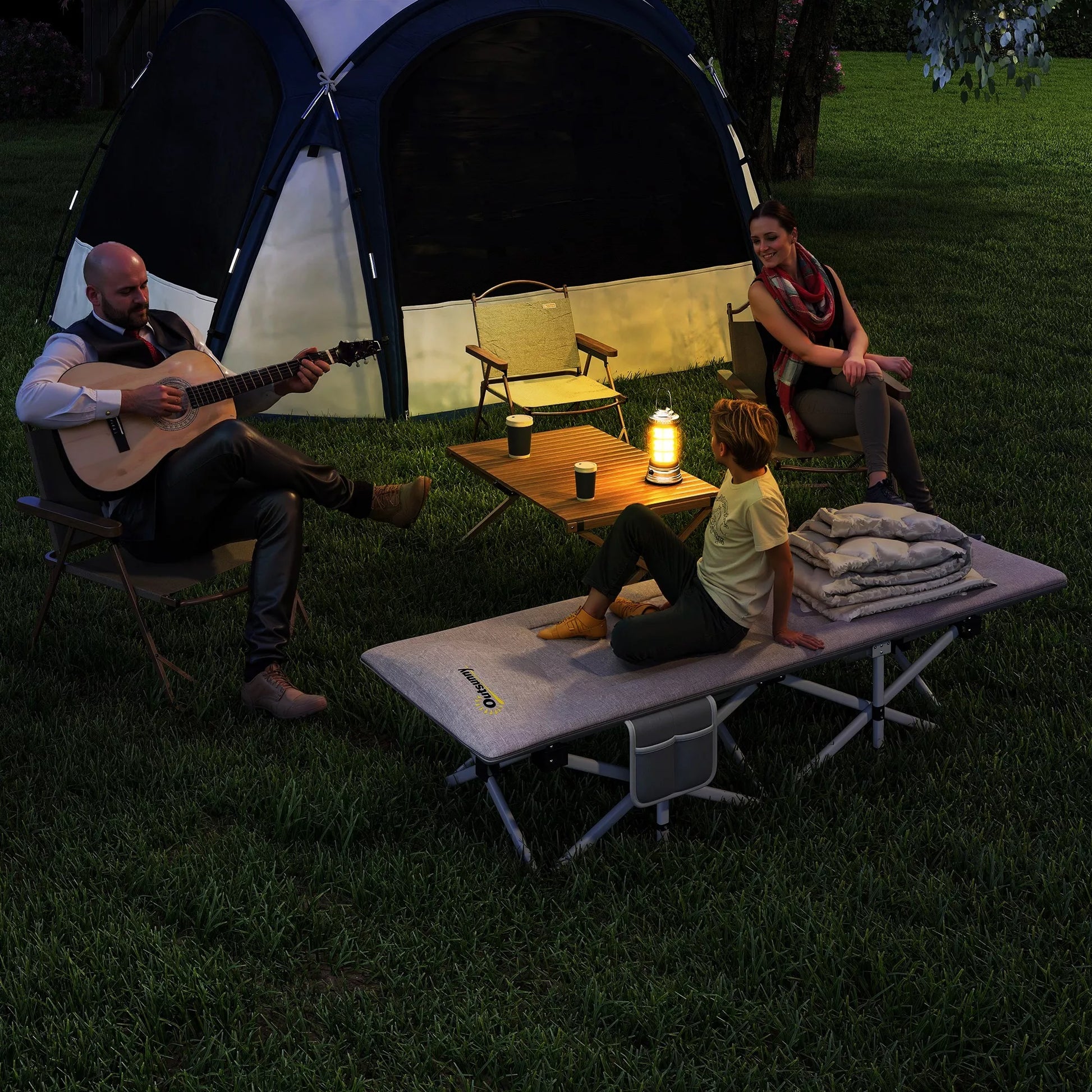 Pasiruoškite lauko nuotykiams su stovyklavietės lova – jūsų nepakeičiama palydove kiekvienoje ekspedicijoje. Ši stovyklavimo lova sukonstruota taip, kad galėtų be vargo išlaikyti iki 200 kg svorį. Po dienos, kupinos nuotykių, mėgaukitės pelnytu poilsiu ant minkšto čiužinio su integruota pagalve. Dėl praktiškos organizatoriaus kišenės svarbiausius daiktus visada turėsite po ranka, o sulankstomas, tvirtas metalinis rėmas užtikrina saugų atramą.