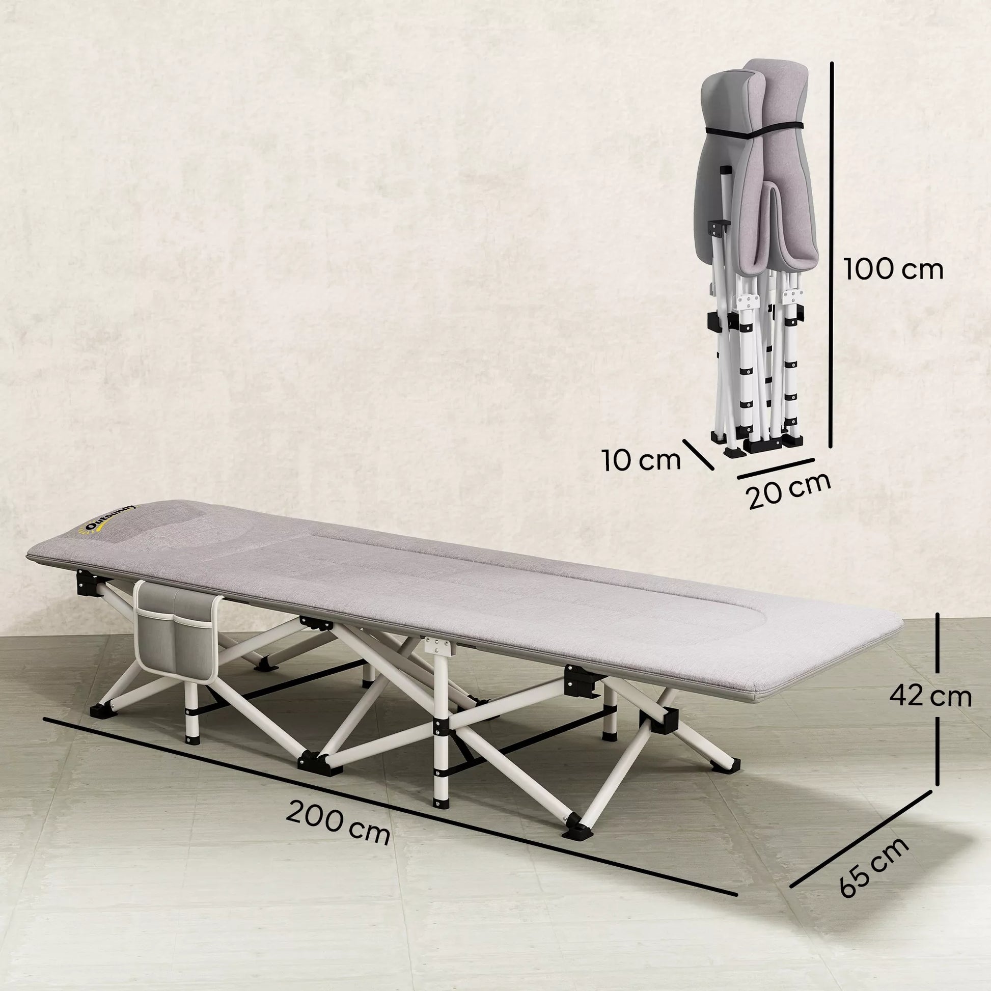 Sulankstoma kempingo lova, minkšta, iki 200 kg, nerūdijančio plieno rėmas, 200x65x42cm, pilka