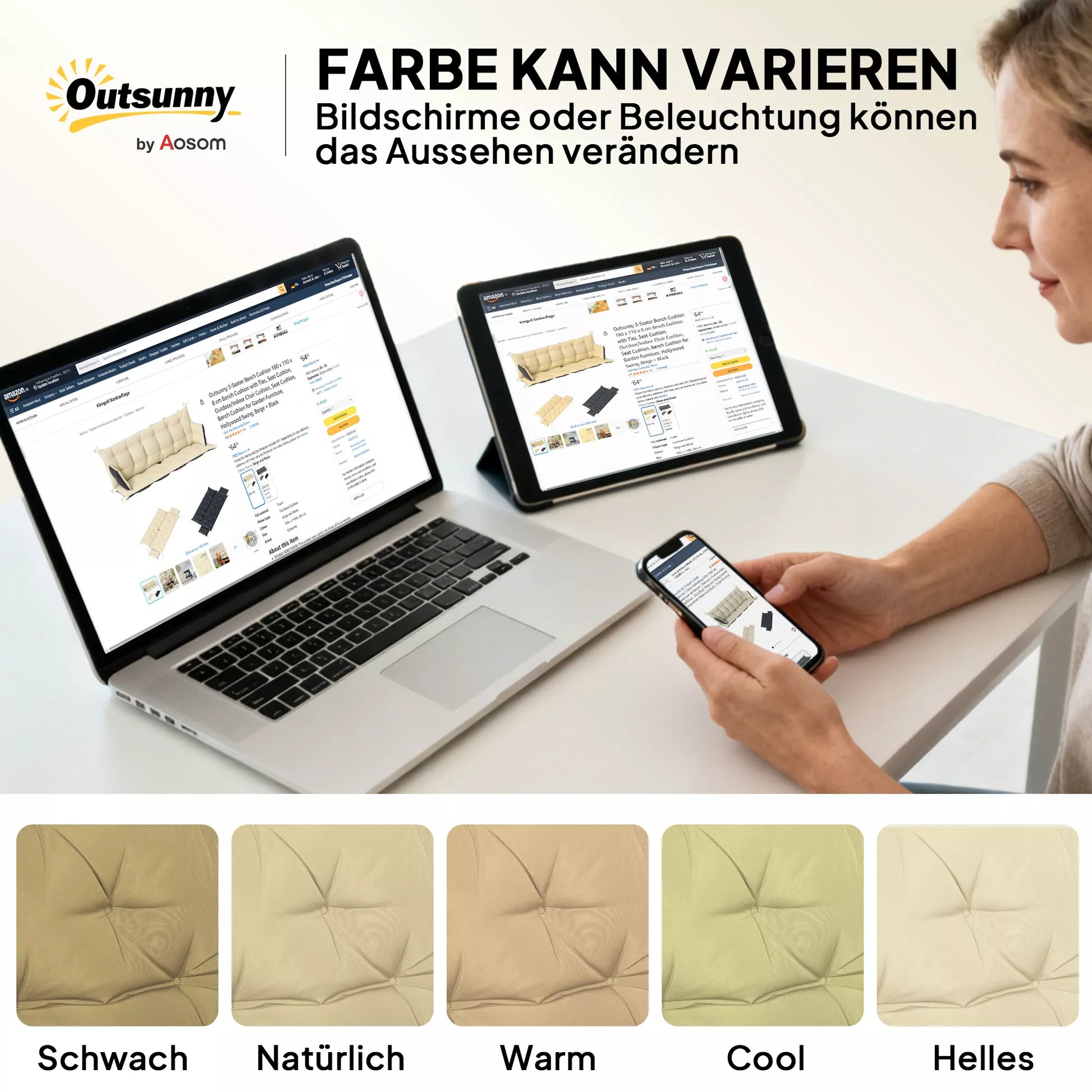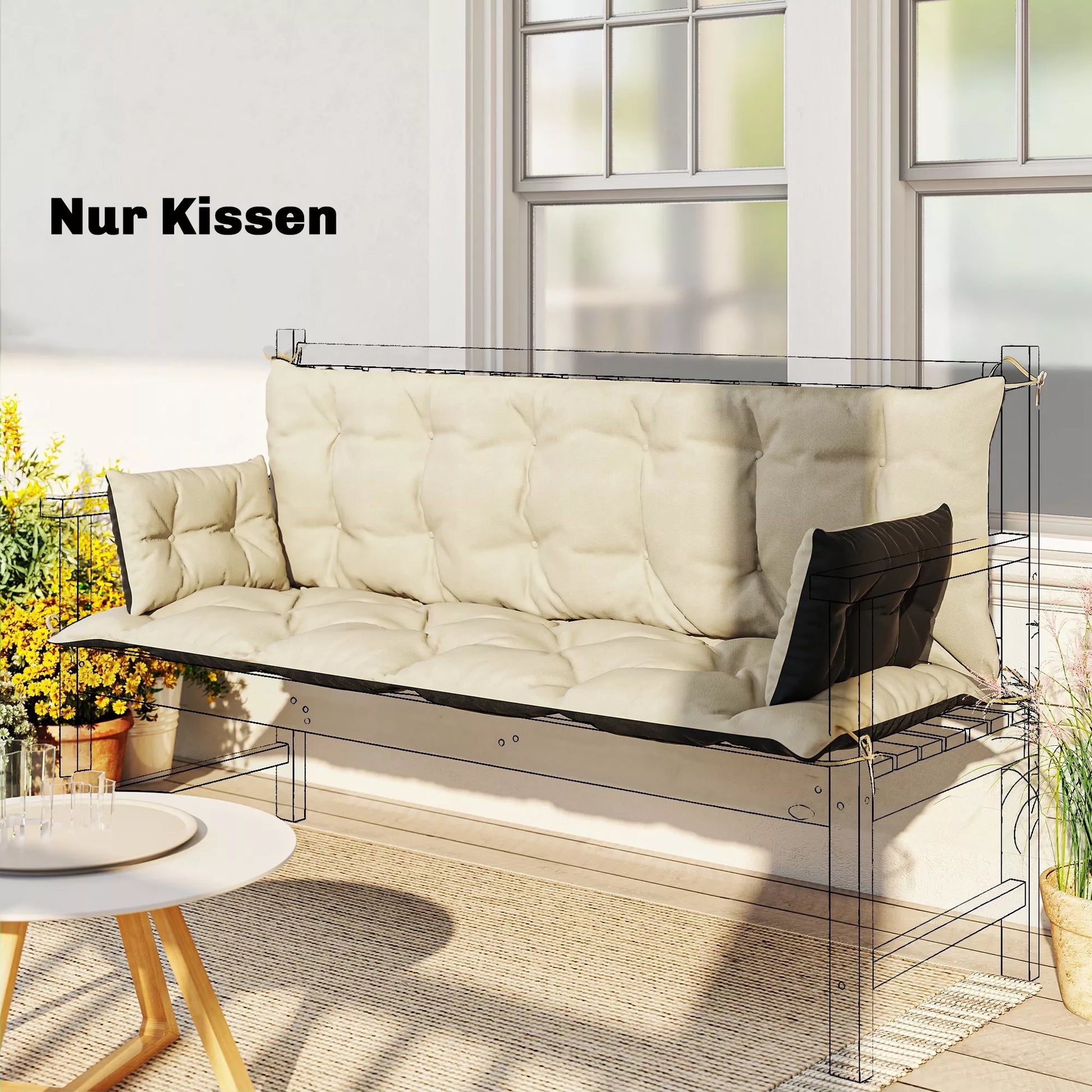 Lauko pagalvių komplektas sodo suolui ar sūpynėms, dviejų spalvų, poliesteris, putplastis, 180 x 110 x 8 cm, smėlio spalvos + juodos