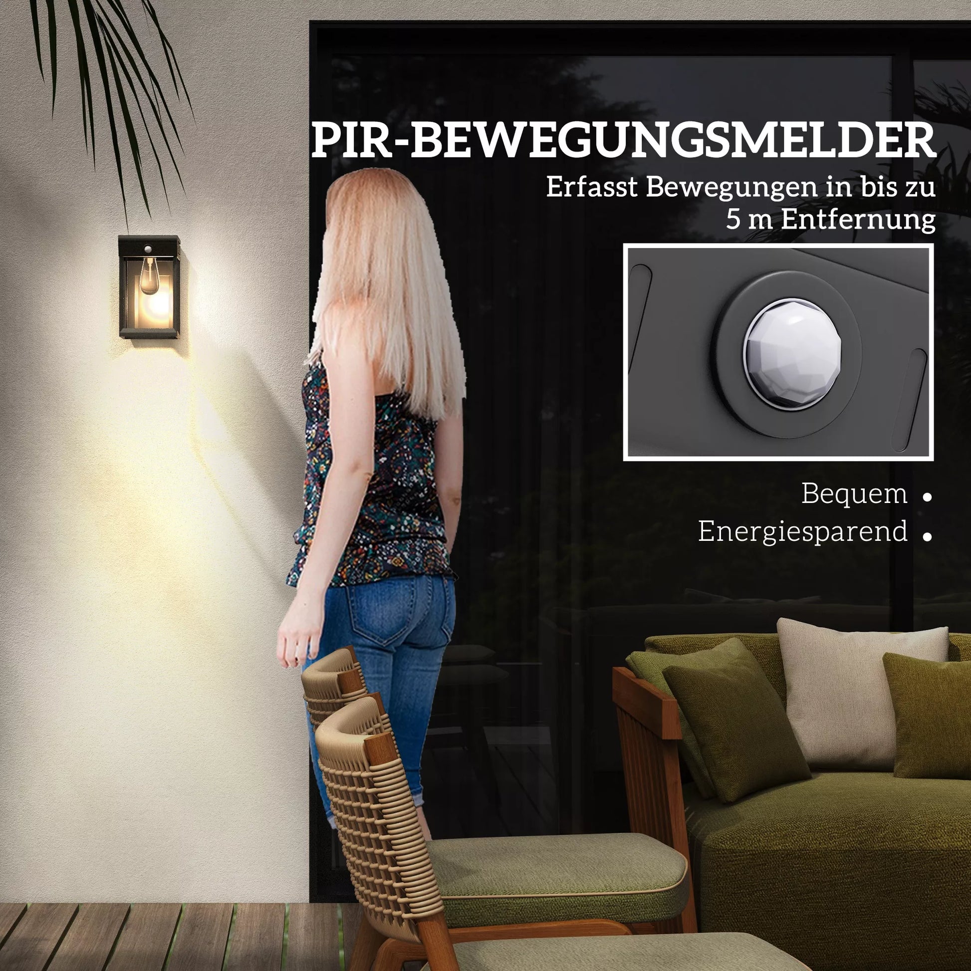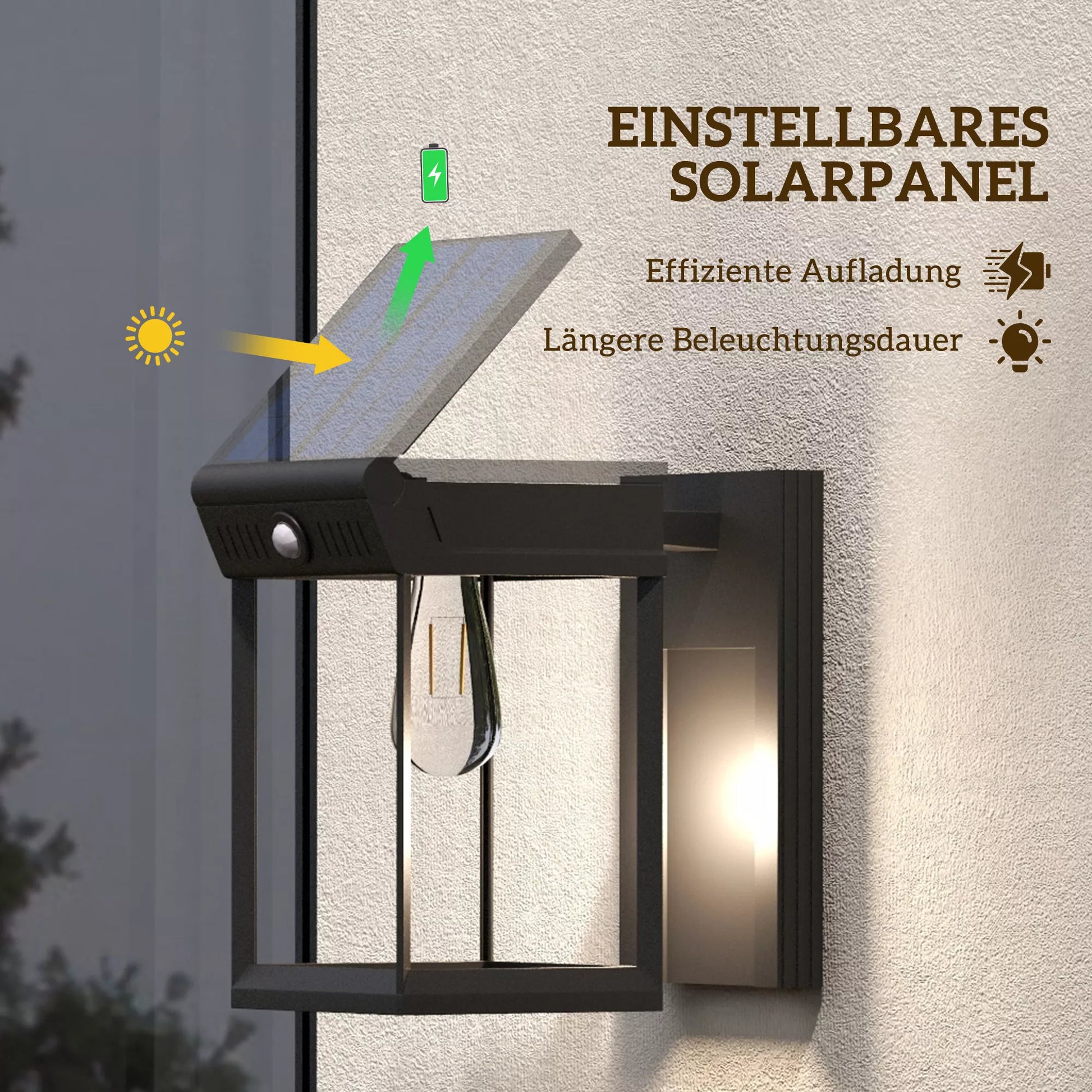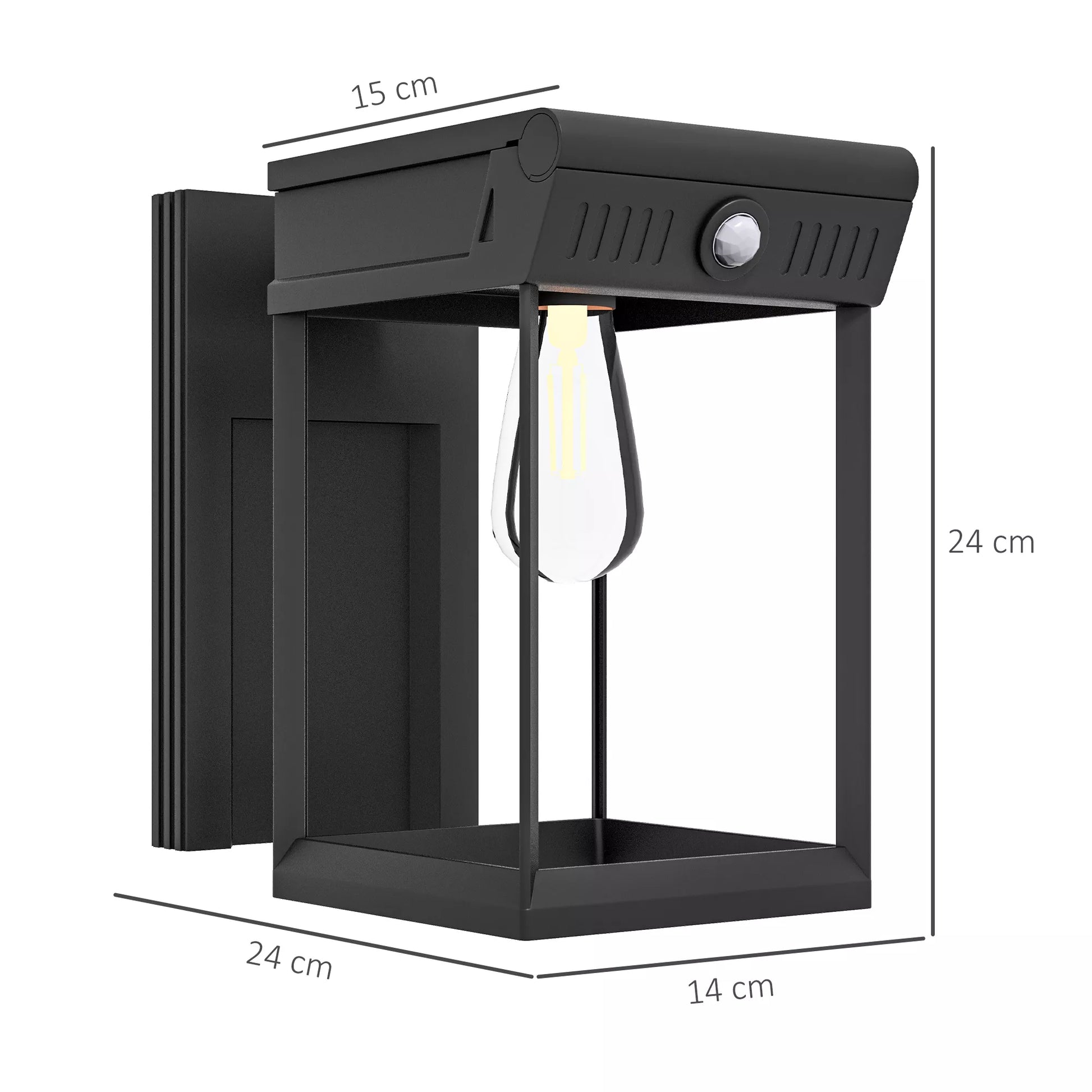 Lauko saulės šviestuvas, atsparus purslams, su judesio jutikliu, 14 cm x 24 cm x 24 cm, Juodas